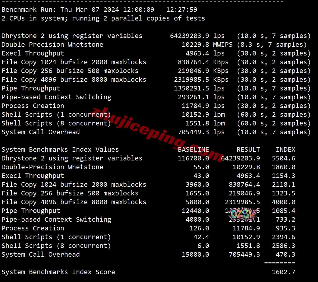VPS性能测试,部分数据如下:
