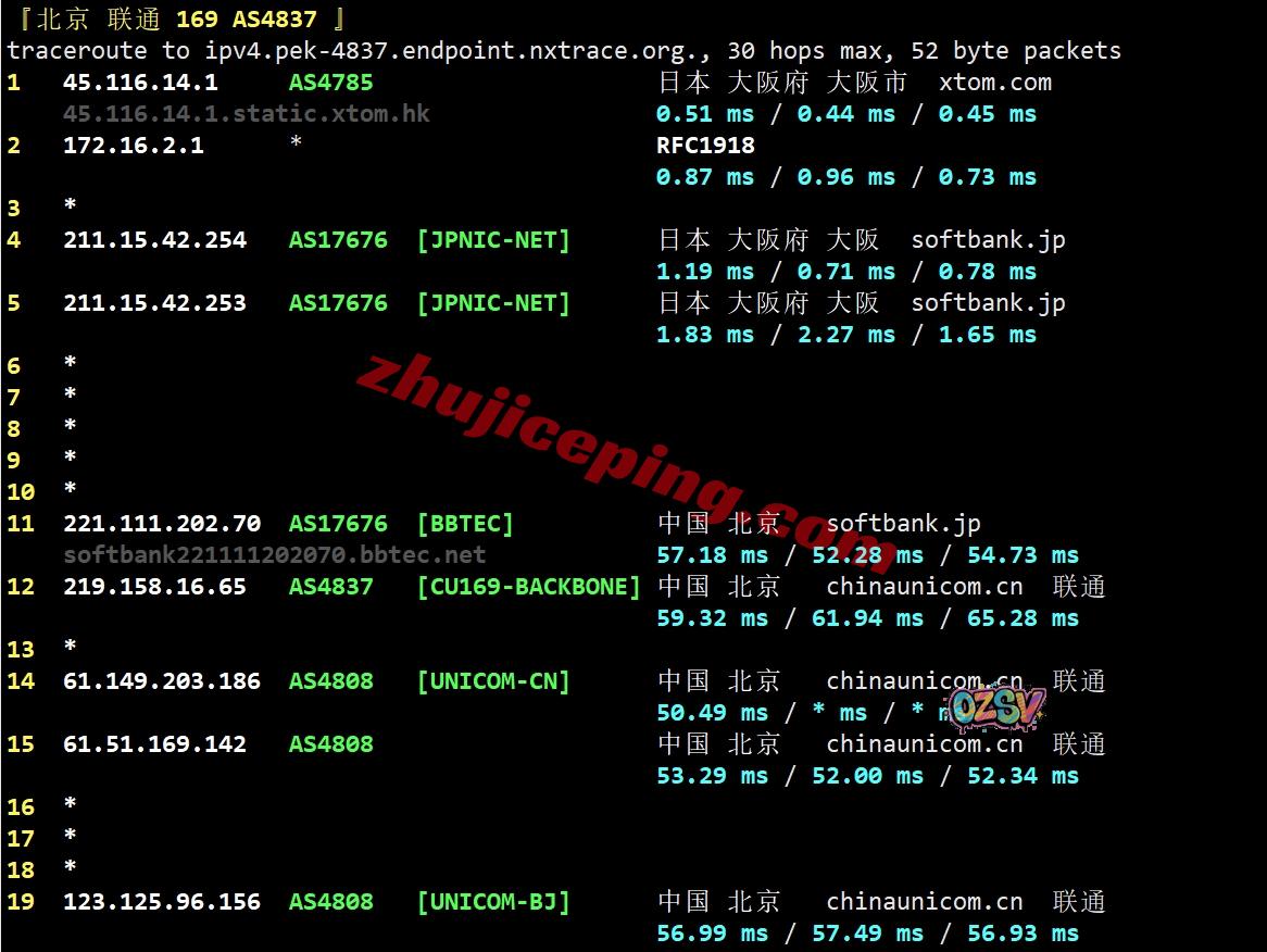 联通去程:骨干网接软银直接去日本