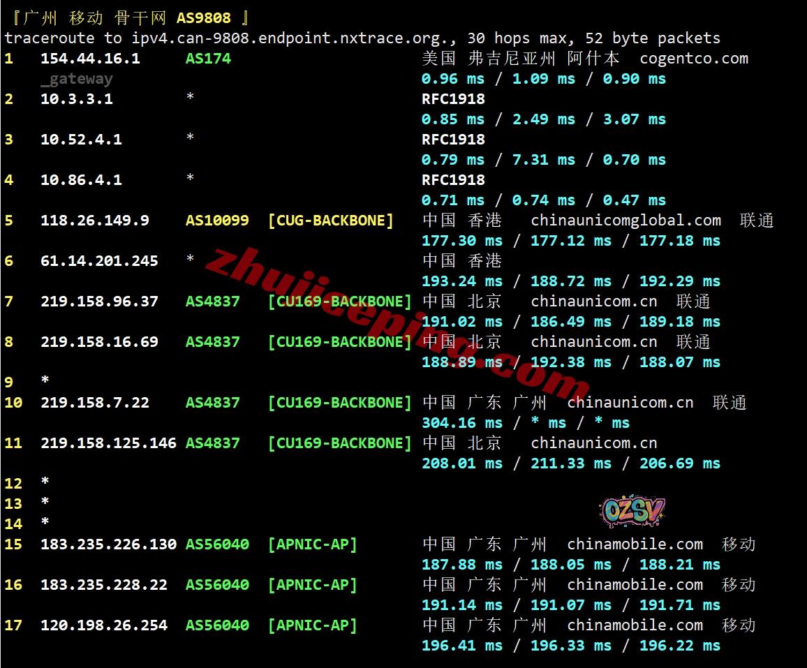 北京/广州方向:走联通国际段AS10099到香港后再走联通AS4837回境内