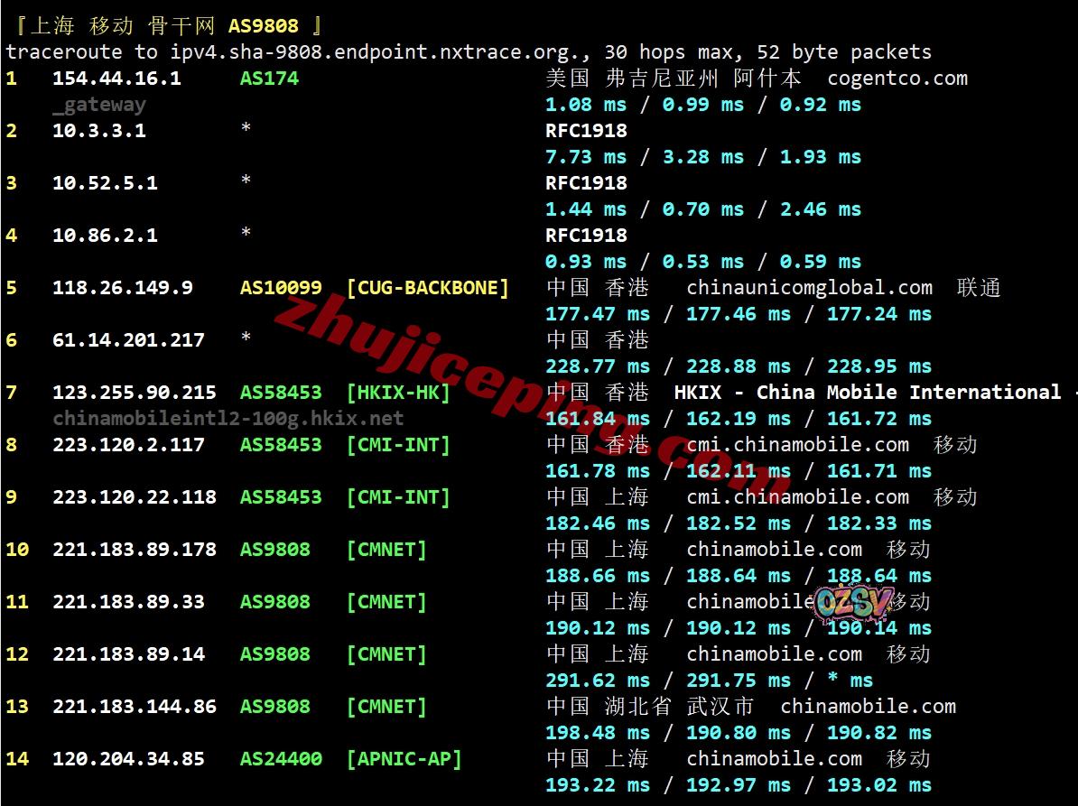 上海方向:走联通国际段AS10099到香港然后转香港HKIX出来对接移动香港CMI节点,再回内地