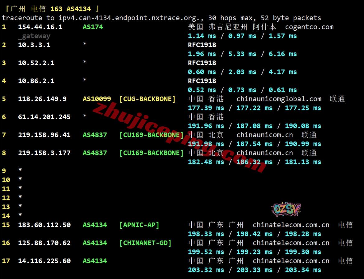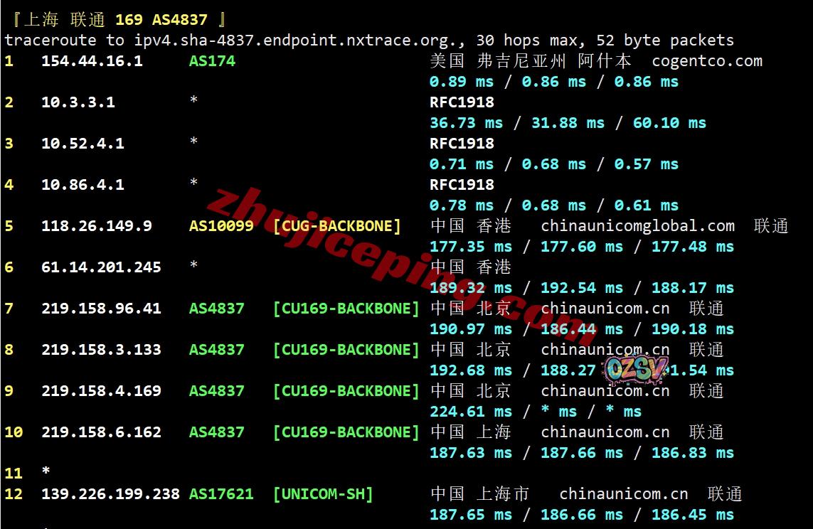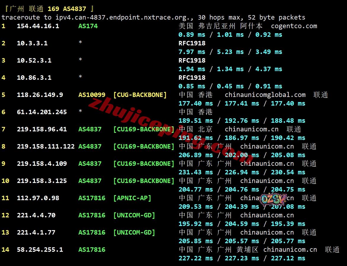 联通回程:走联通国际段AS10099到香港后再走联通AS4837回境内