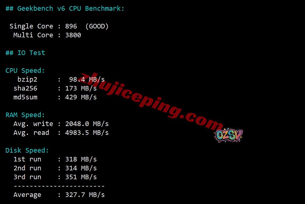 CPU为铂金6133(20核、40线程、主频2.5GHz、加速3.0GHz)、启用了BBR,不支持IPv6,cogent的ISP IP,归属地洛杉矶,当前I/O测试数据大致321MB/S: