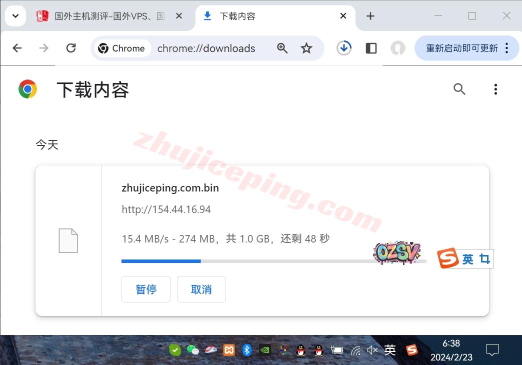 存放在测试vps上的文件,广州联通家宽直接用浏览器下载,大致速度: