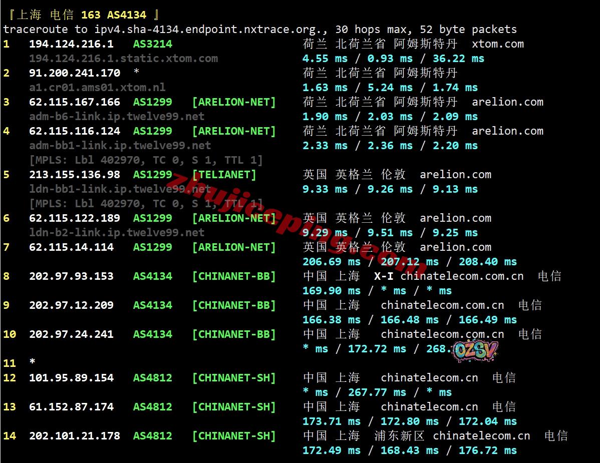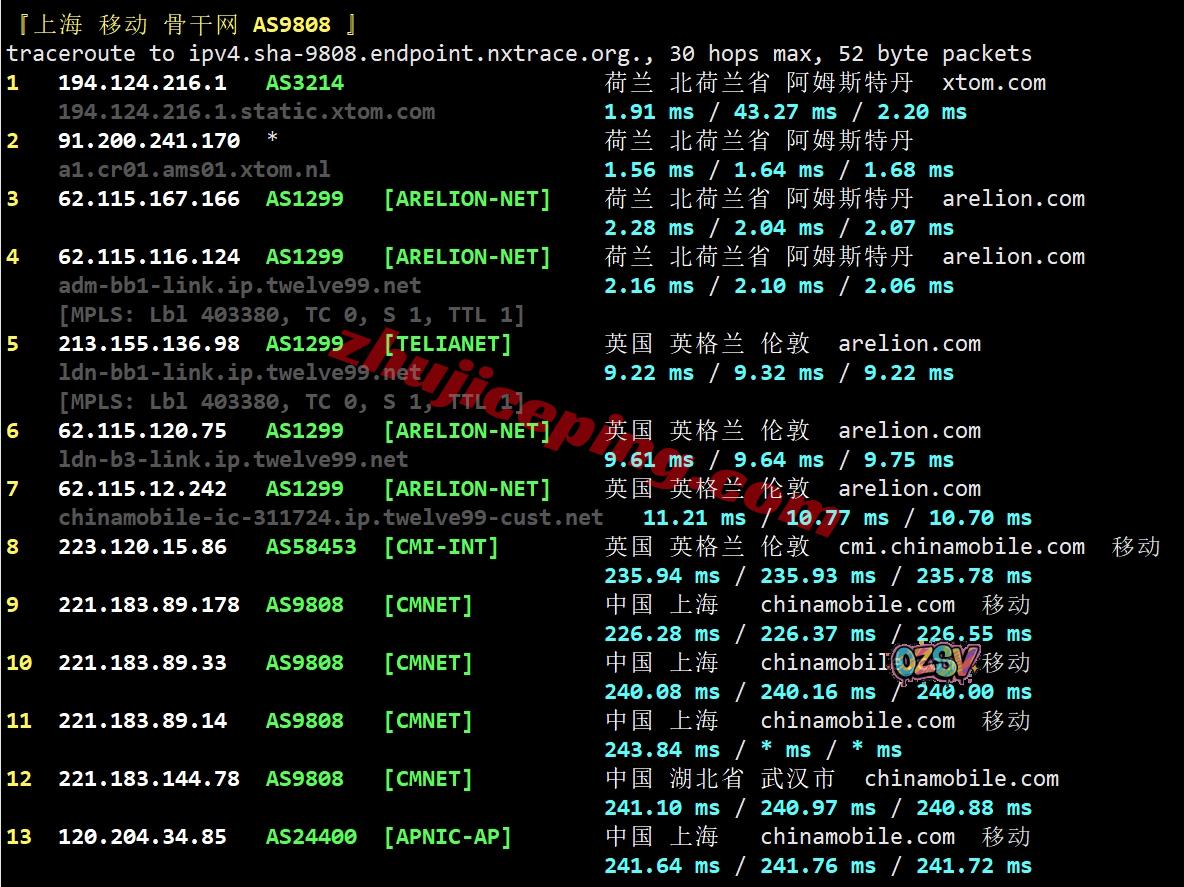 上海方向:走twelve99/telia到英国伦敦转,然后移动CMI伦敦节点,再直连回国