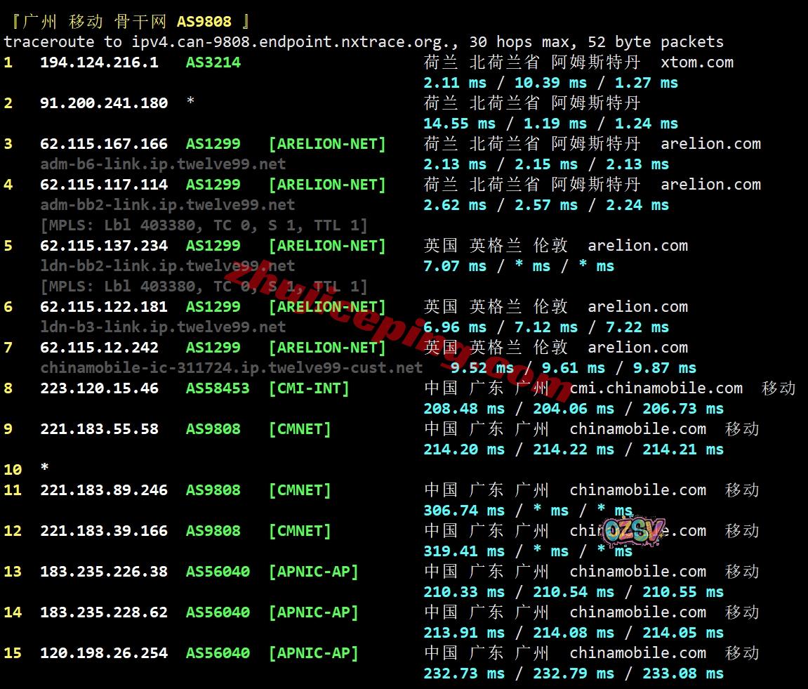 移动去程:直连移动英国伦敦节点然后再去荷兰