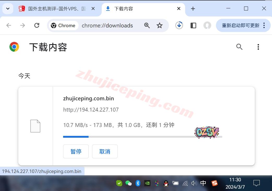 存放在测试VPS上的文件,广州联通家宽,直接用Chrome下载文件,看看速度吧: