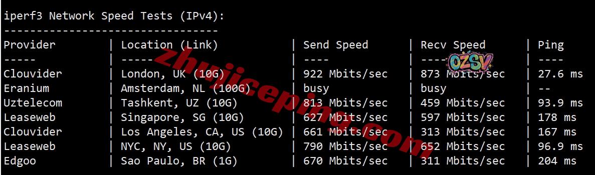 国内三网多节点的带宽上下行测试,目前站长没有找到可用的移动节点,大家凑合看吧: