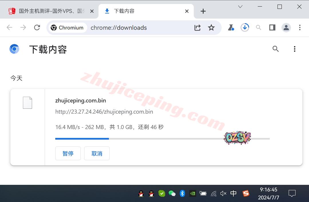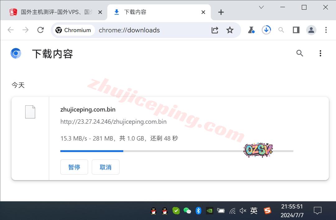 存放正在测试VPS上的文件,广州联通家宽直接用浏览器下载,大致下载速度如下: