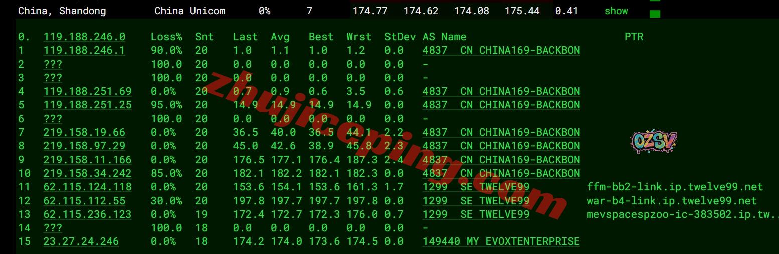 联通去程:直连联通德国法兰克福然后转telia去波兰