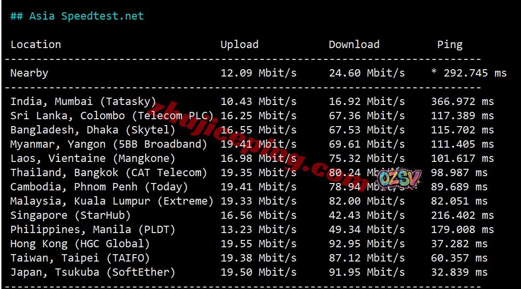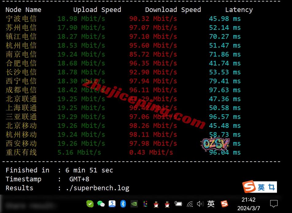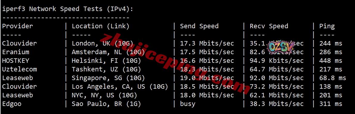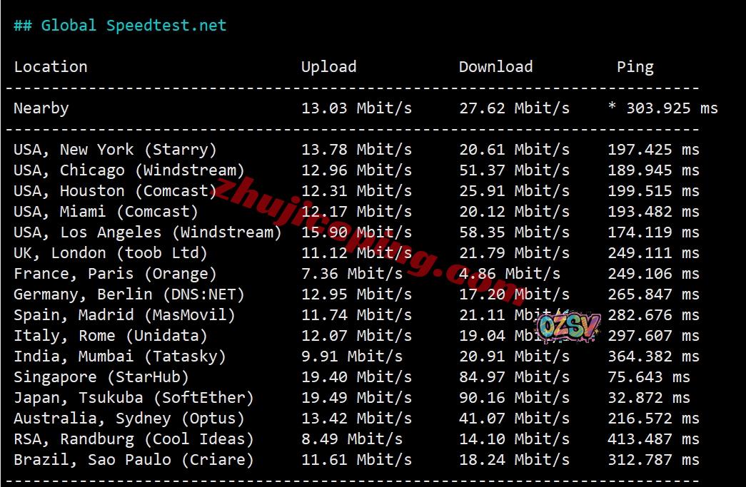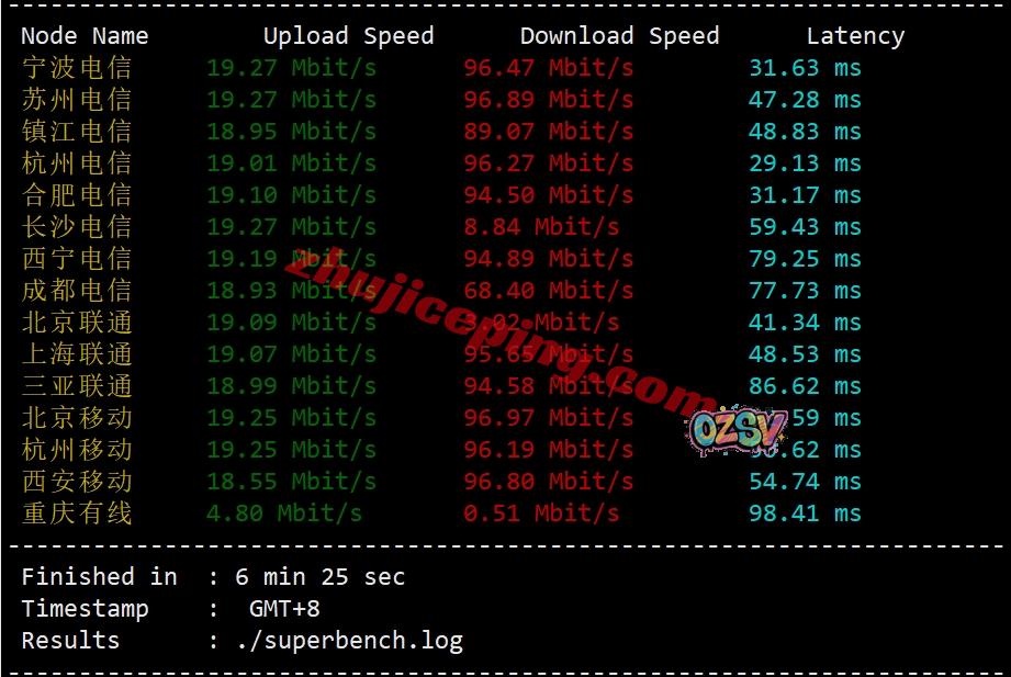 VPS默认20Mbps带宽,国内三网多节点测试带宽上下行,看看具体数据: