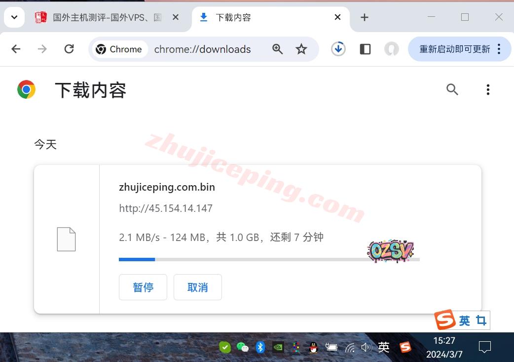 存放在测试VPS上的文件,广州联通家宽直接用Chrome浏览器下载,大致下载速度: