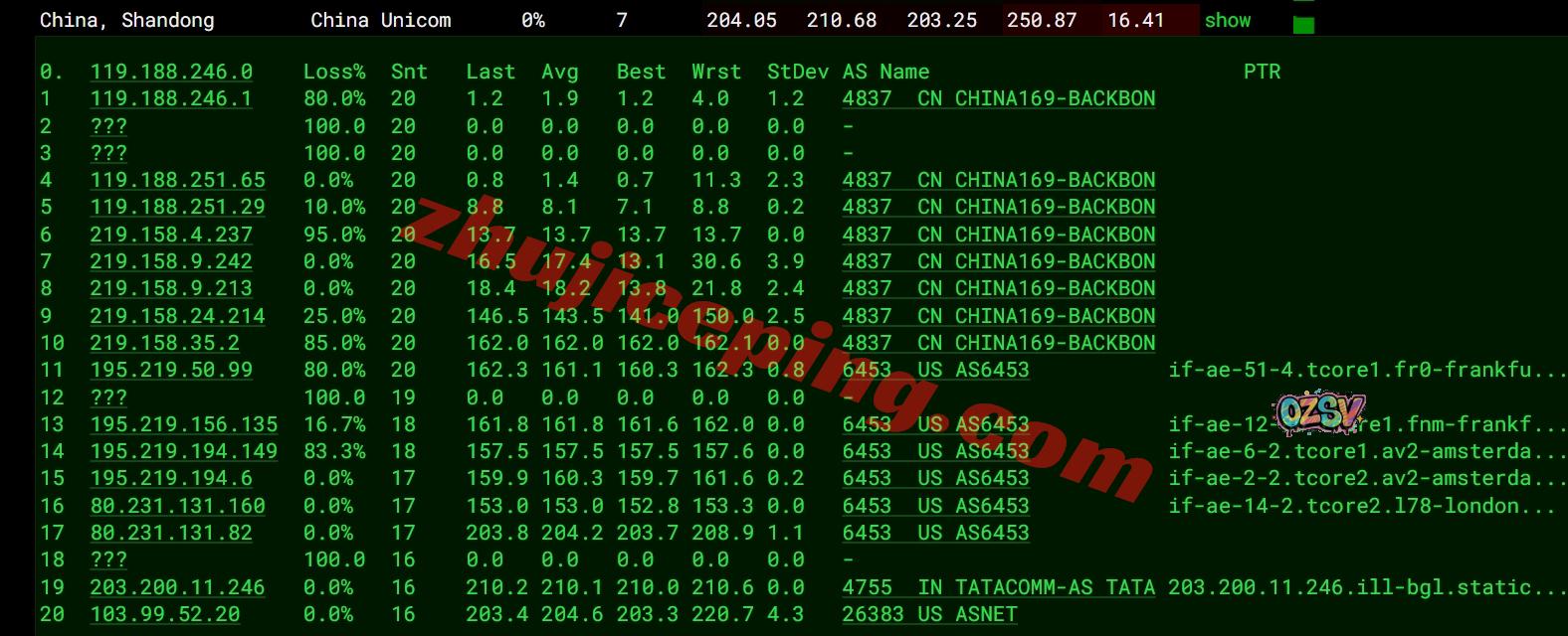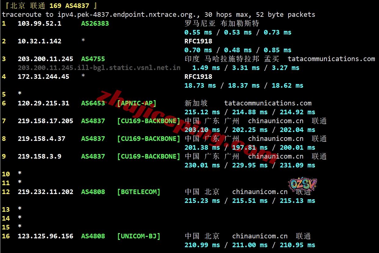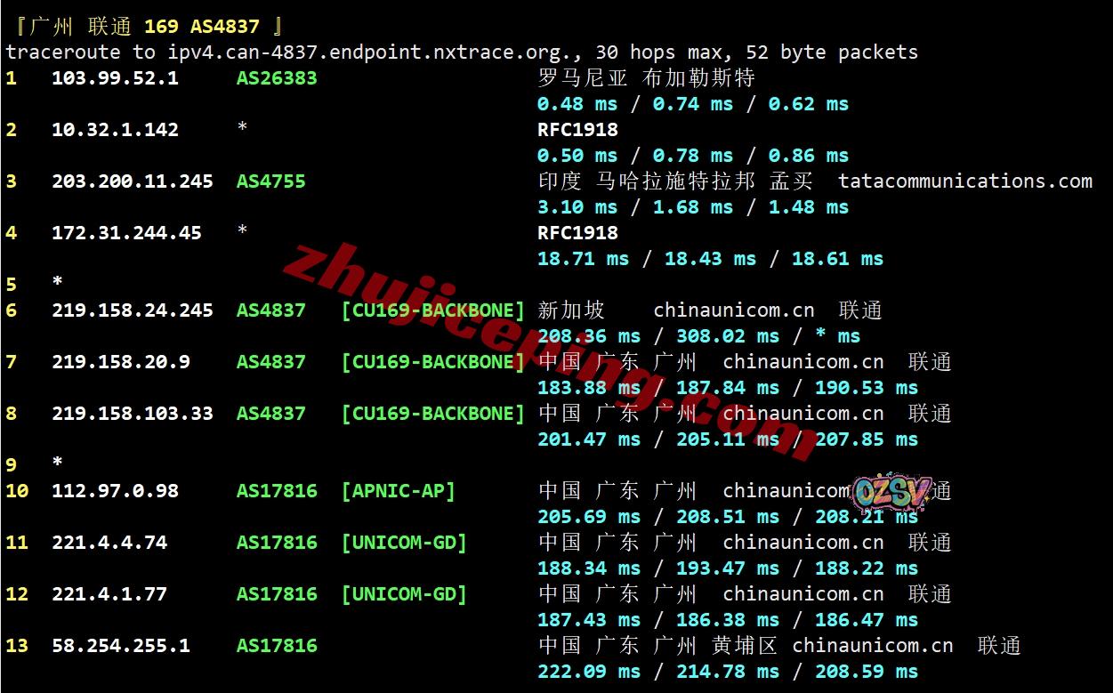 广州方向:走tata到新加坡,然后切联通新加坡节点后直连回国,所以大家能看到我个人广州联通的效果还蛮不错