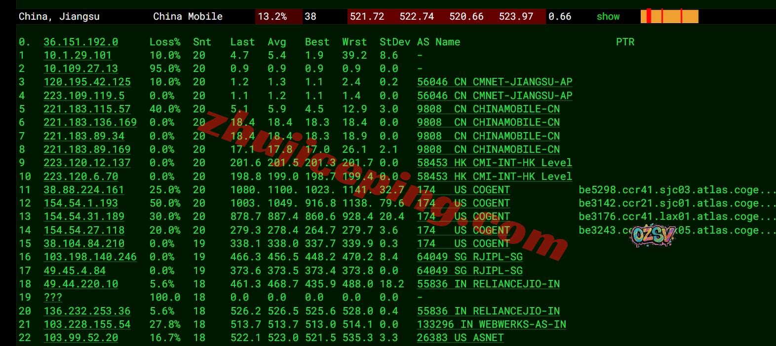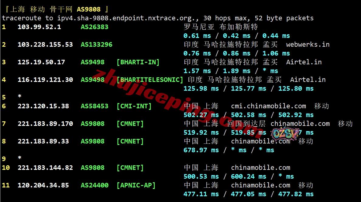 上海方向:走airtel后面看不到了… 延迟500多毫秒