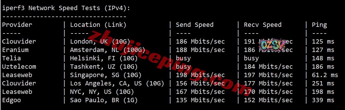 iperf3,几个热门节点,IPv4环境,大致测试结果:
