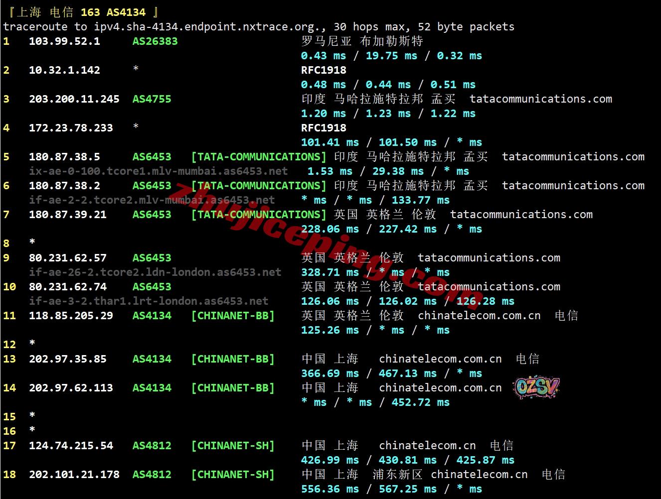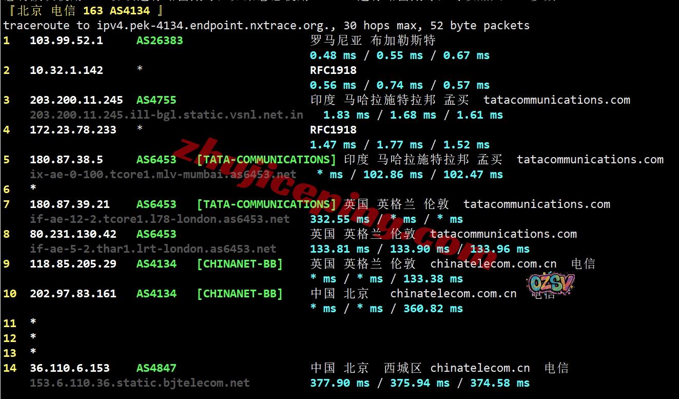 北京/上海方向:走TATA去英国,从电信伦敦节点直连回国
