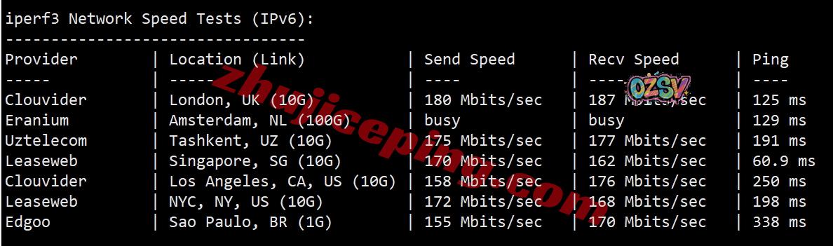 iperf3,几个热门节点,IPv6环境,大致测试结果: