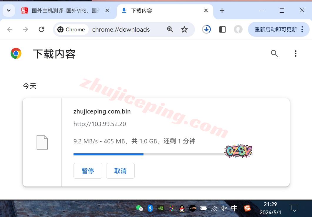 存放在测试用的VPS上的文件,广州联通家宽直接用Chrome下载,大致下载速度: