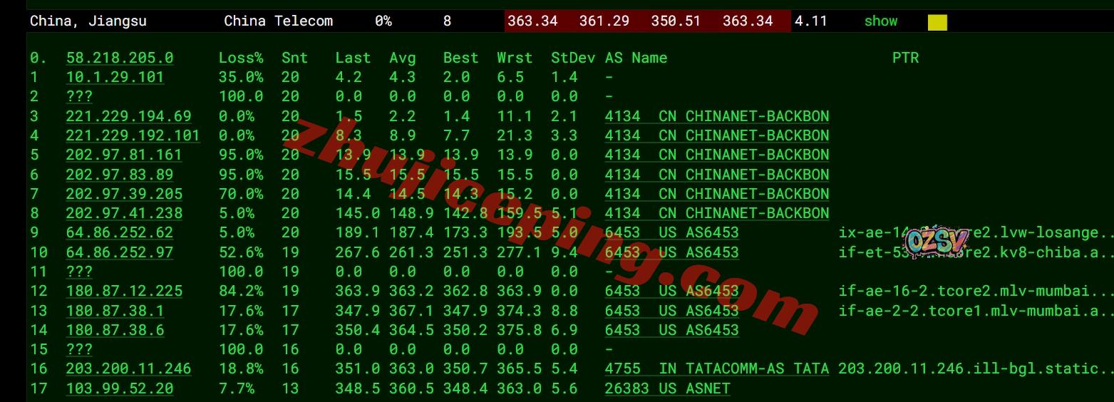 电信去程:直连电信洛杉矶节点,然后转tata再去印度