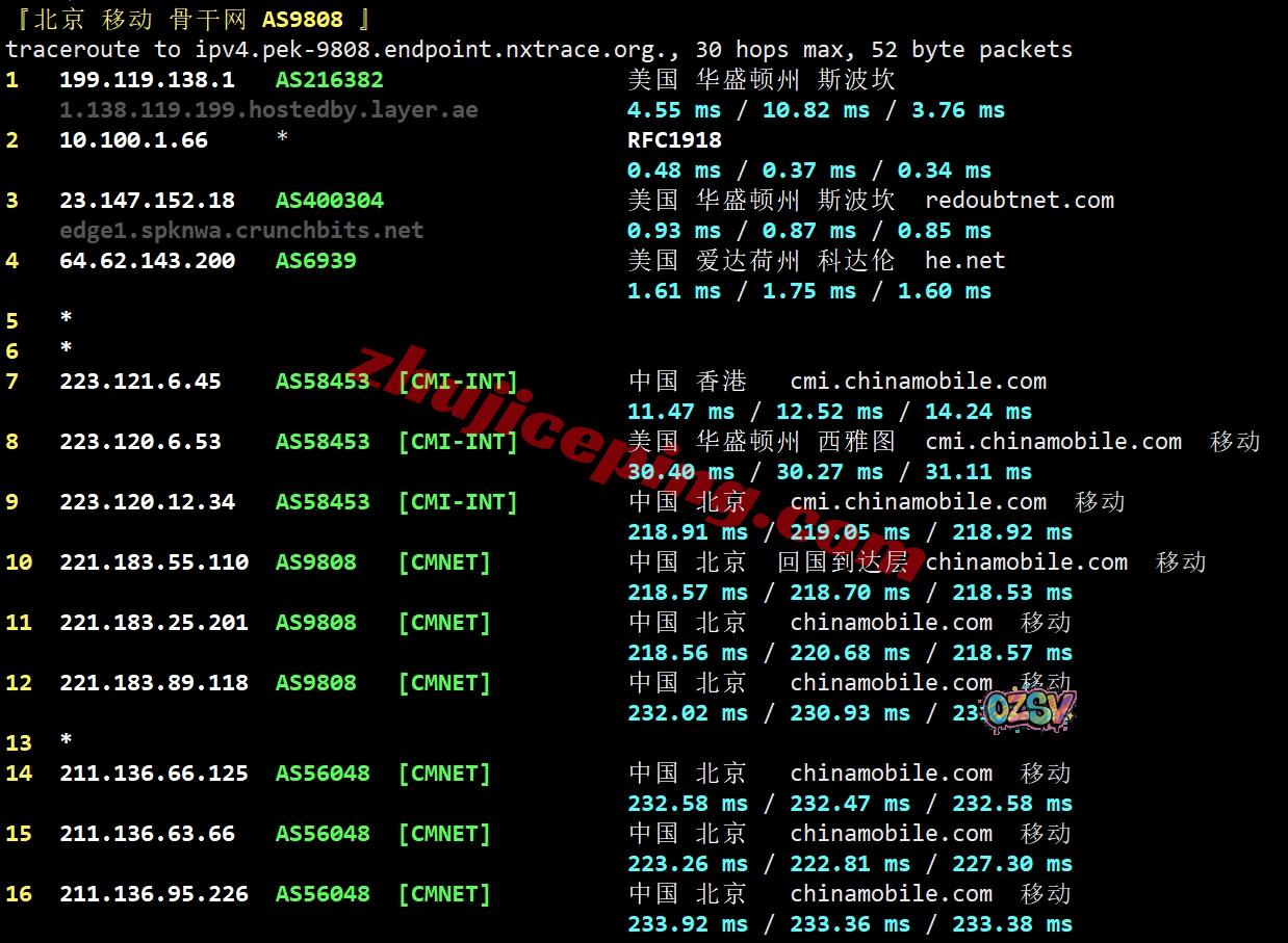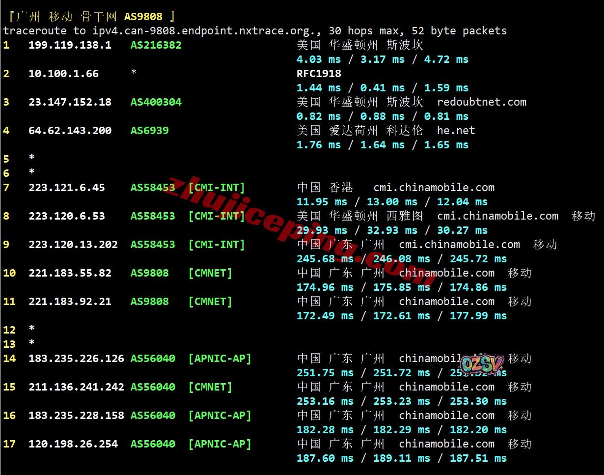 北京/广州方向:走西雅图移动CMI节点直连回国