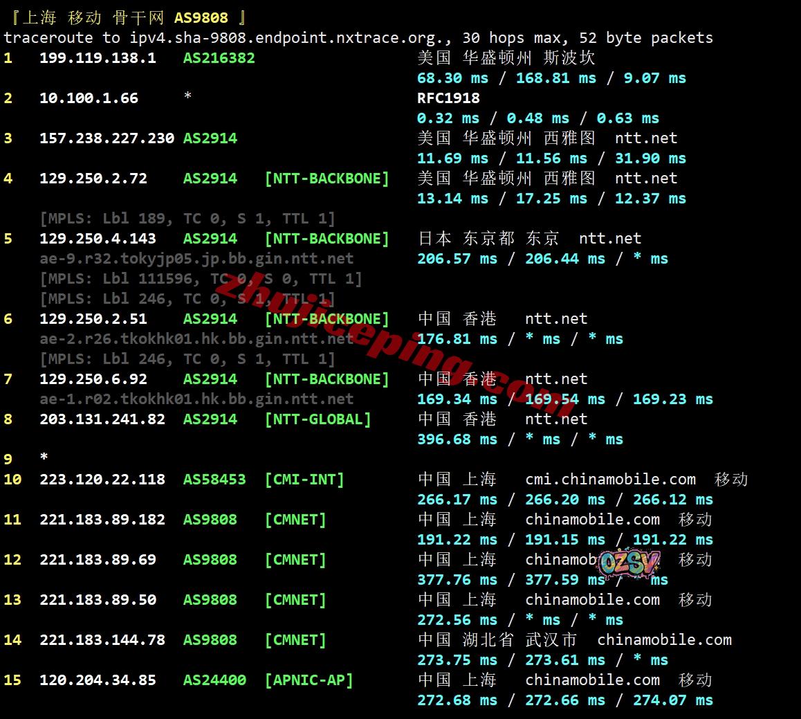 移动去程:直连移动圣何塞节点,然后走HE.NET最后去了斯波坎