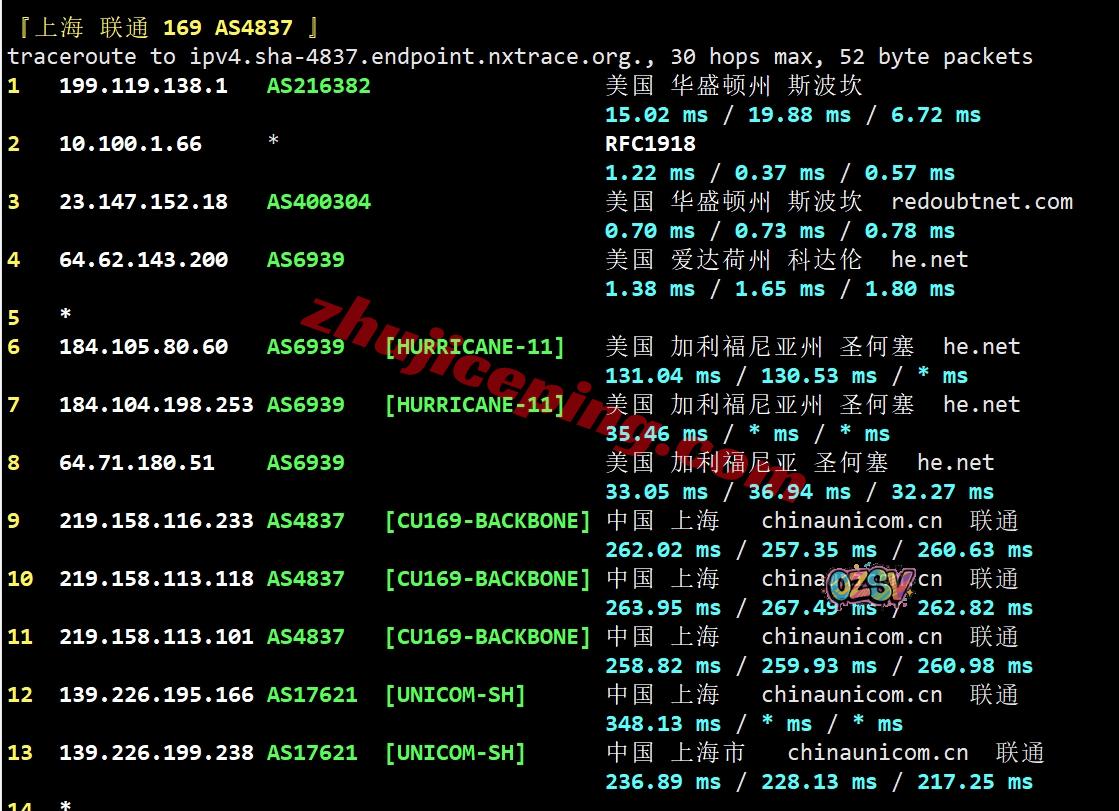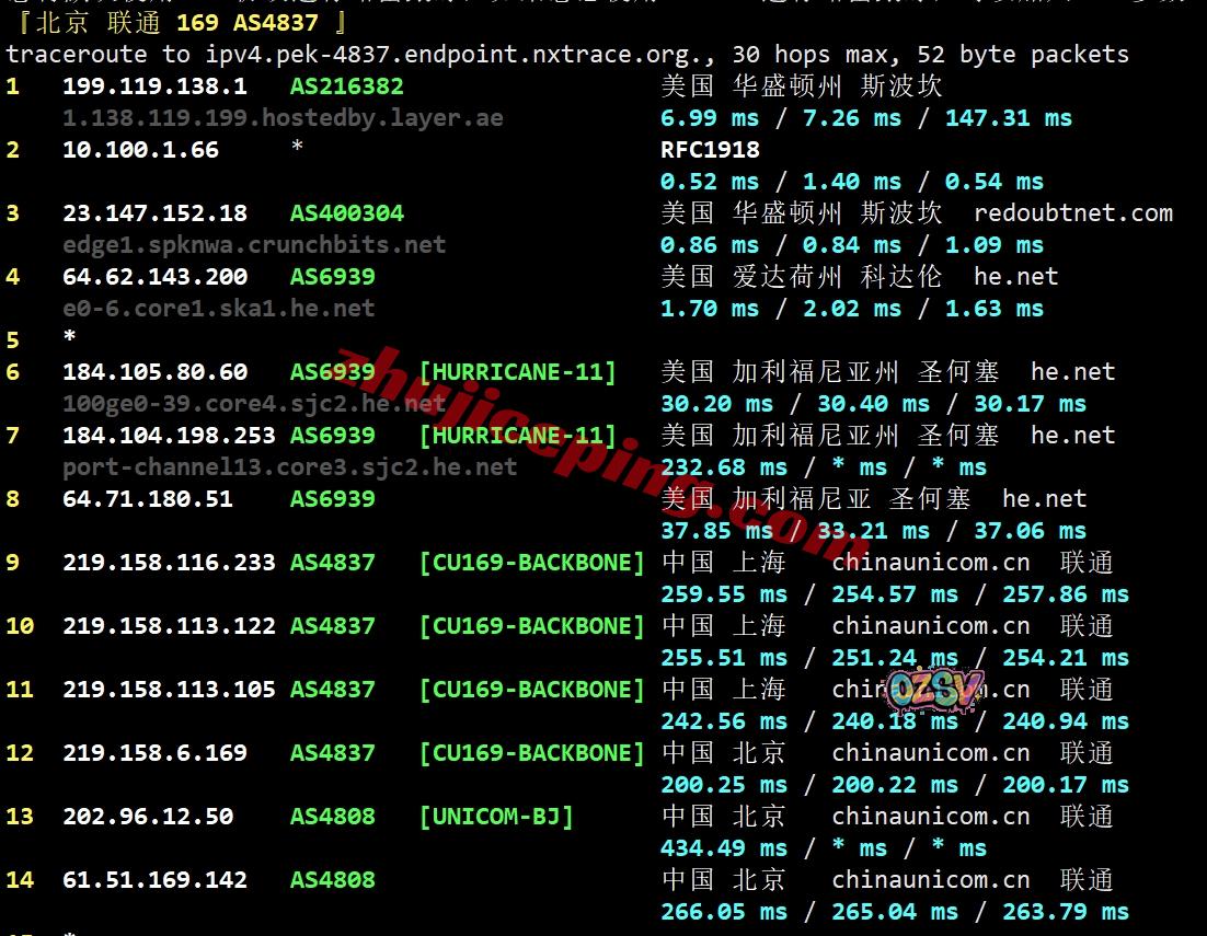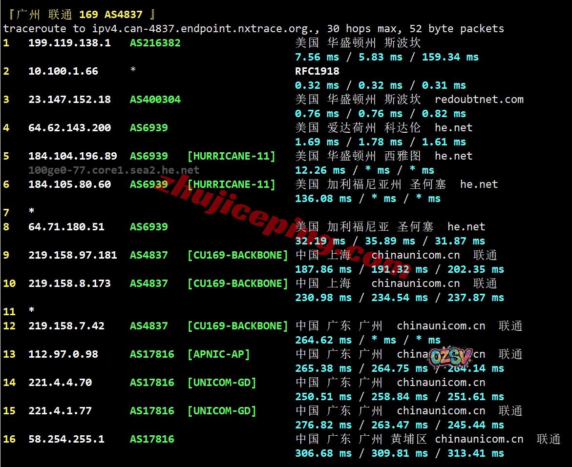 联通去程:直连联通圣何塞节点然后走HE.NET去斯波坎