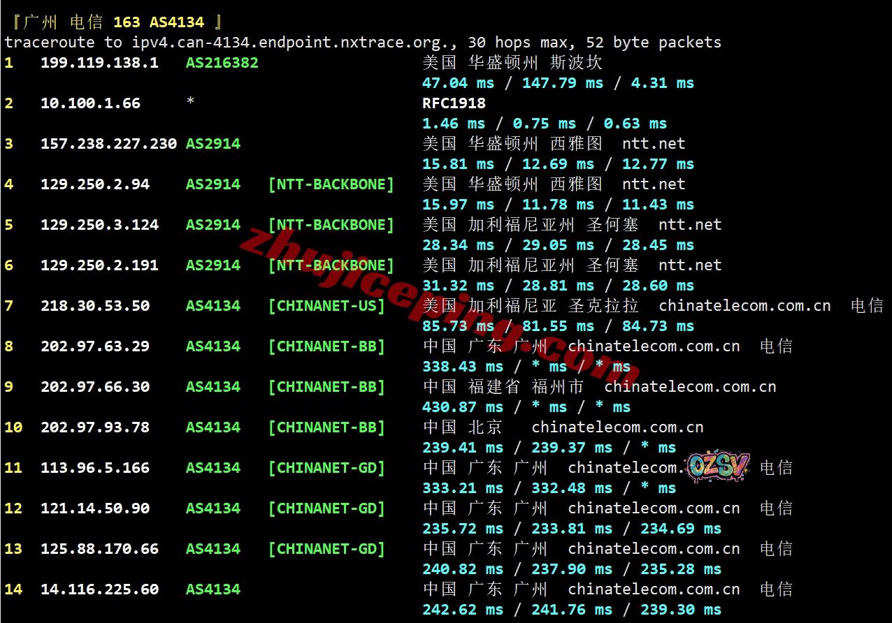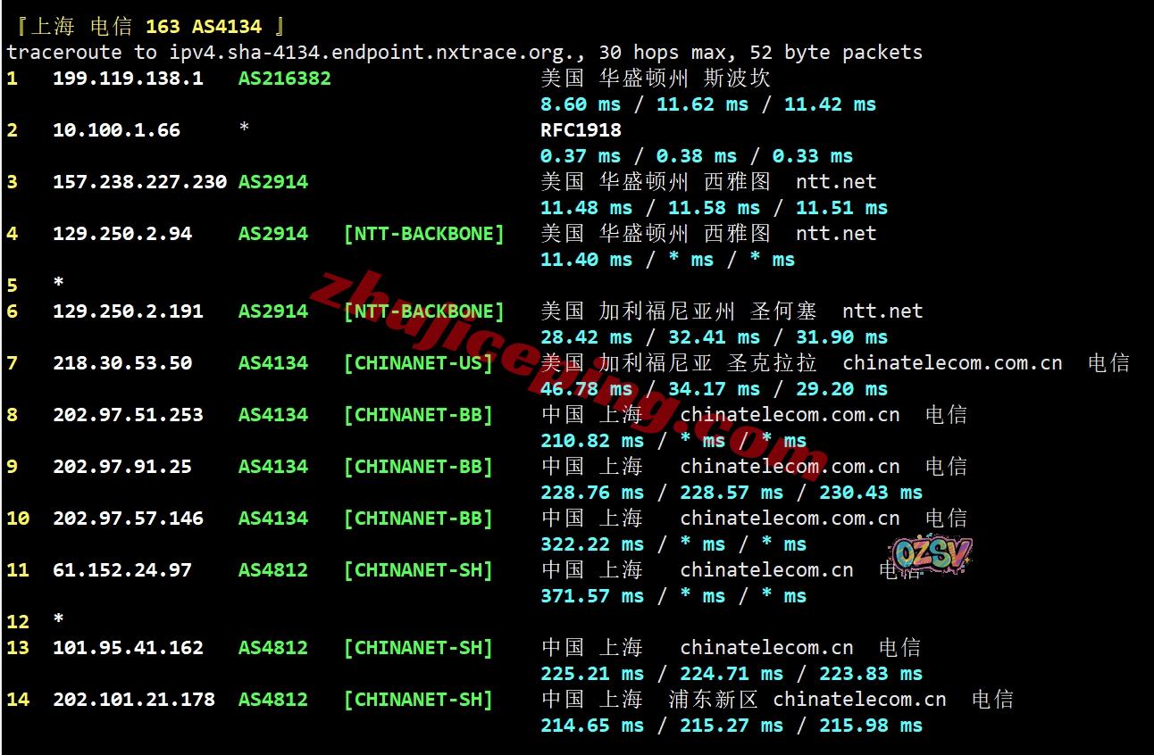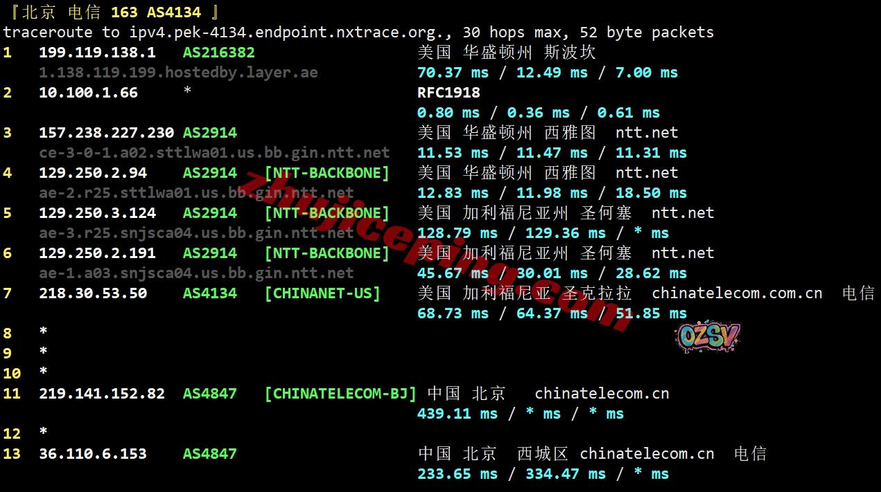电信去程:直连电信圣何塞节点然后走NTT去斯波坎