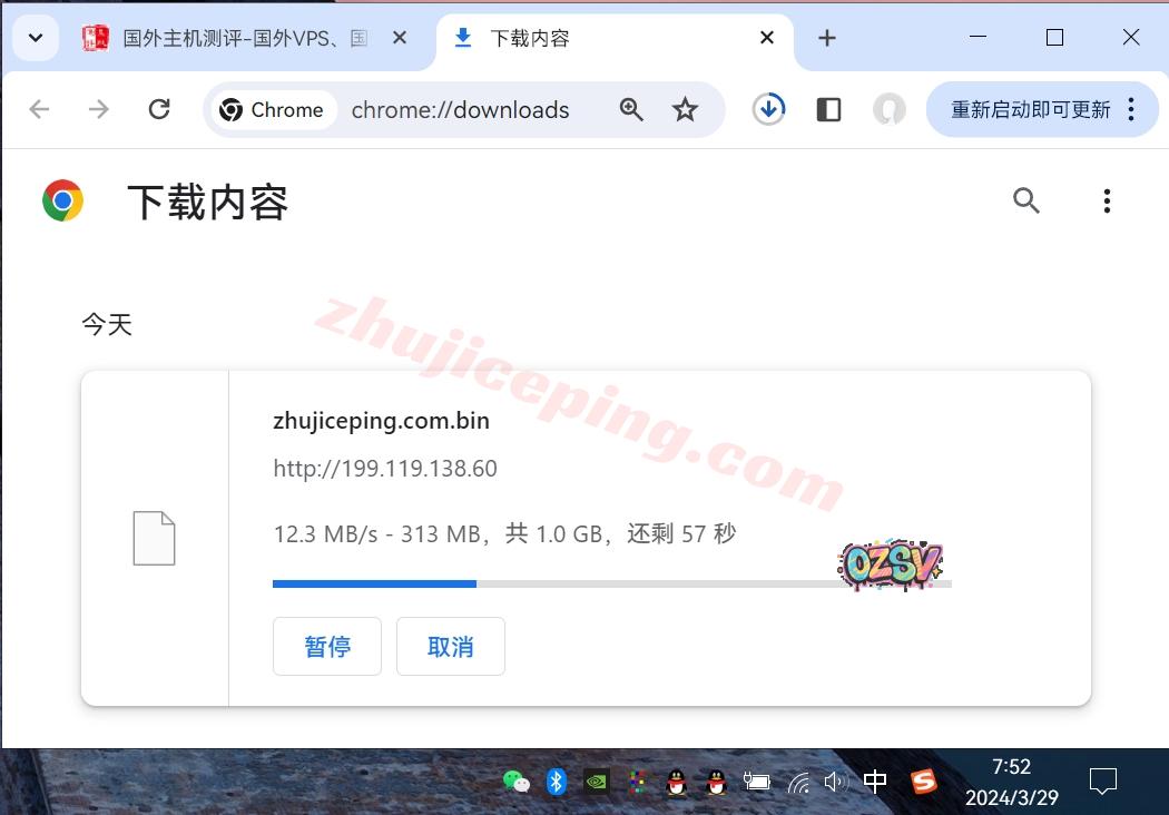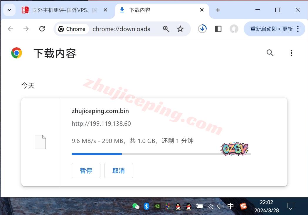 存放在测试VPS上的文件,广州联通家宽直接用浏览器下载,大致下载速度如下: