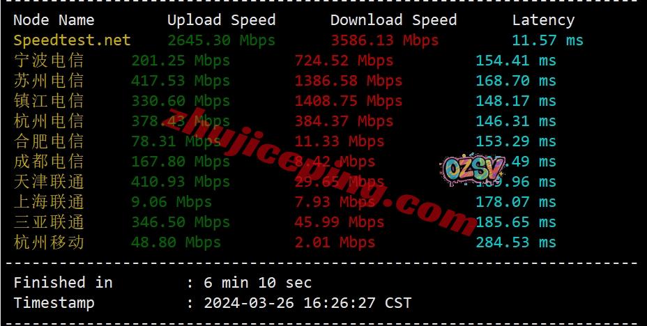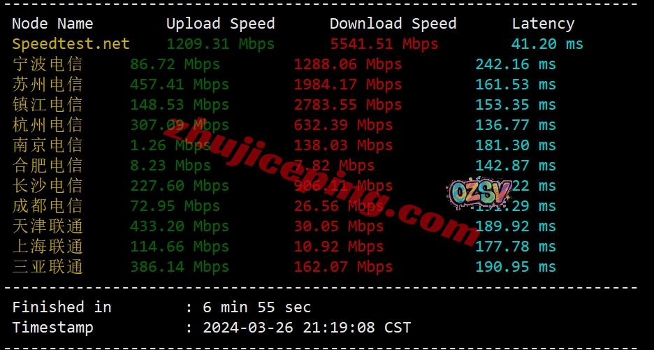 国内三网多节点的上下行带宽测试数据: