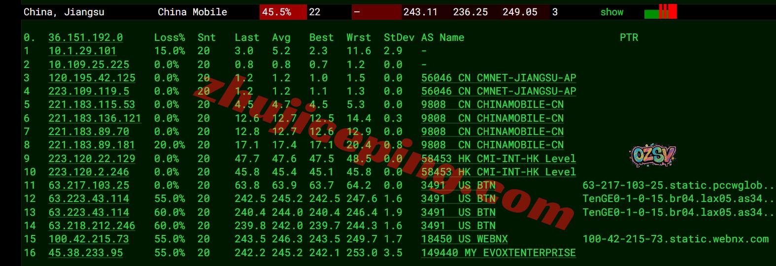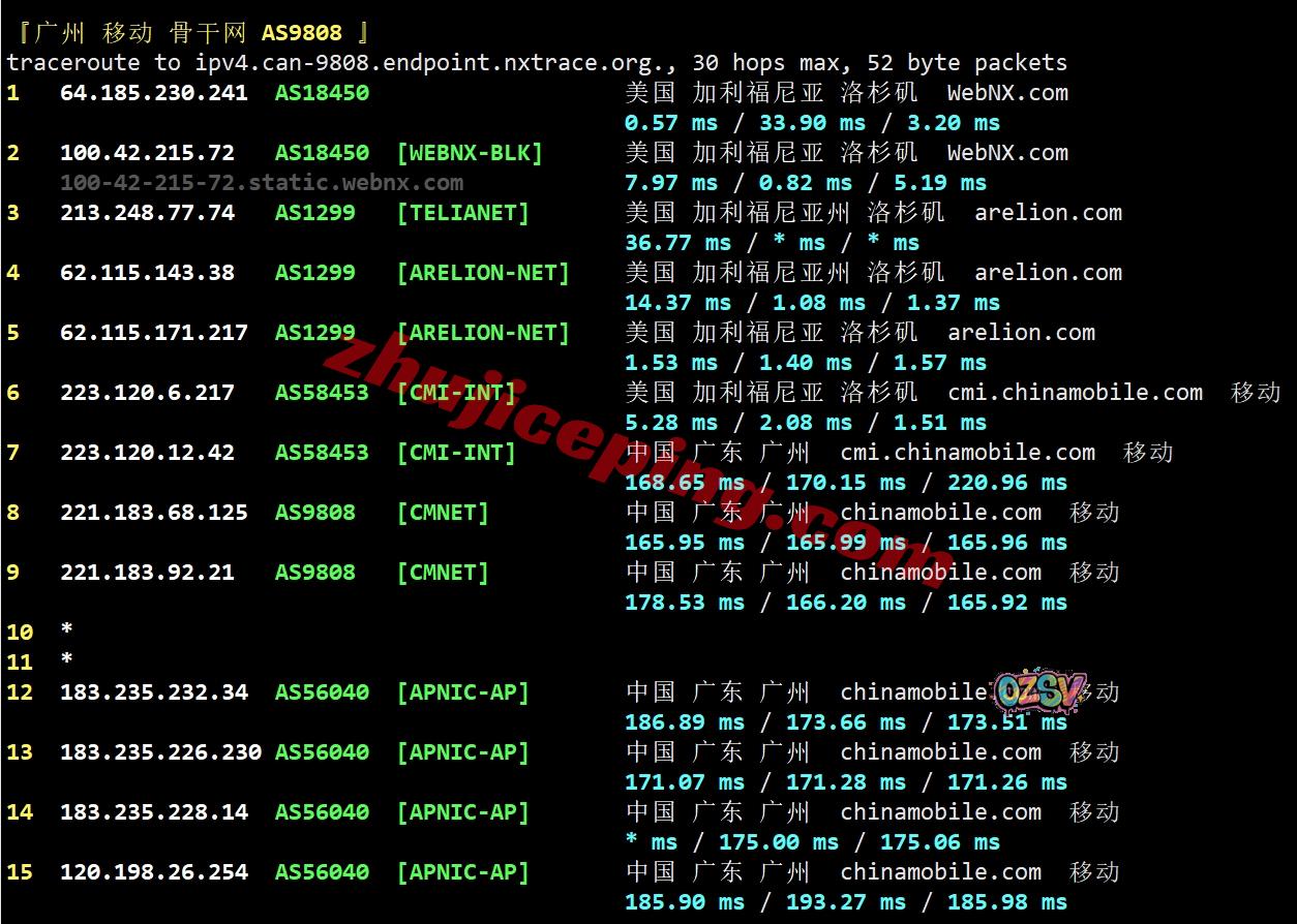 移动去程:移动CMI从香港转pccw去美国洛杉矶然后到机房