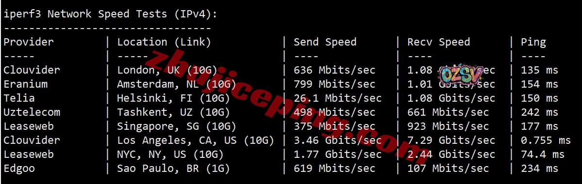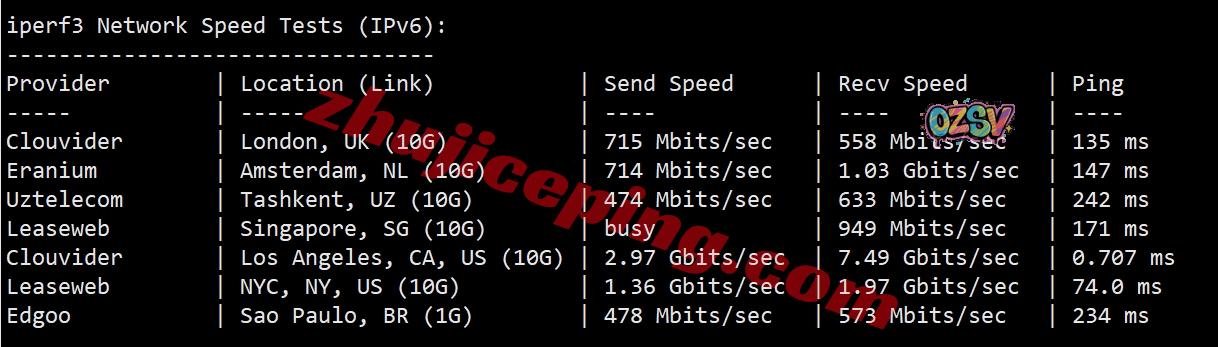 iperf3,几个欧美节点,IPv6环境下的测试: