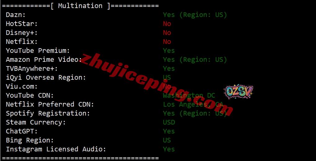部分跨区域流媒体解锁测试: