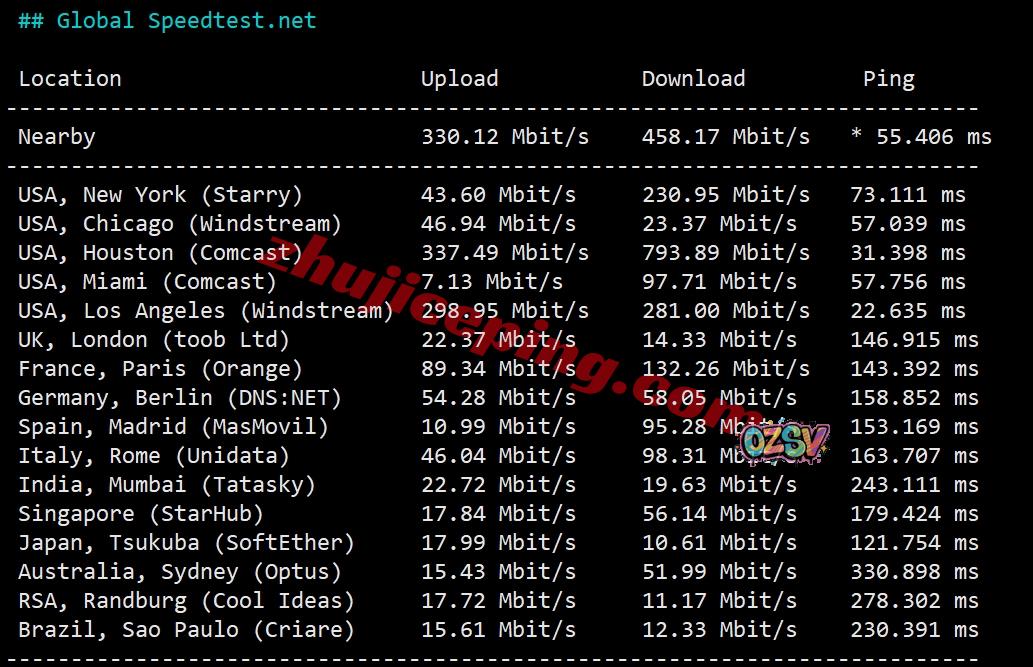 speedtest.net的部分国际节点的测试效果: