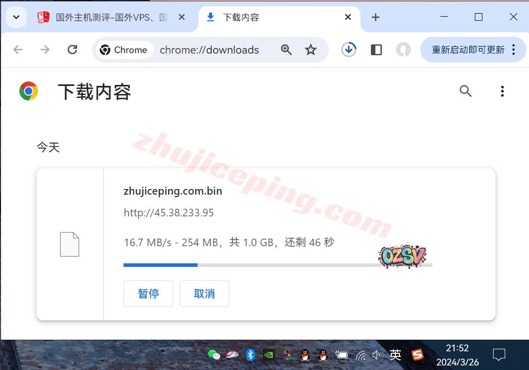 存放在测试VPS上的文件,广州联通直接用浏览器下载,大致速度:
