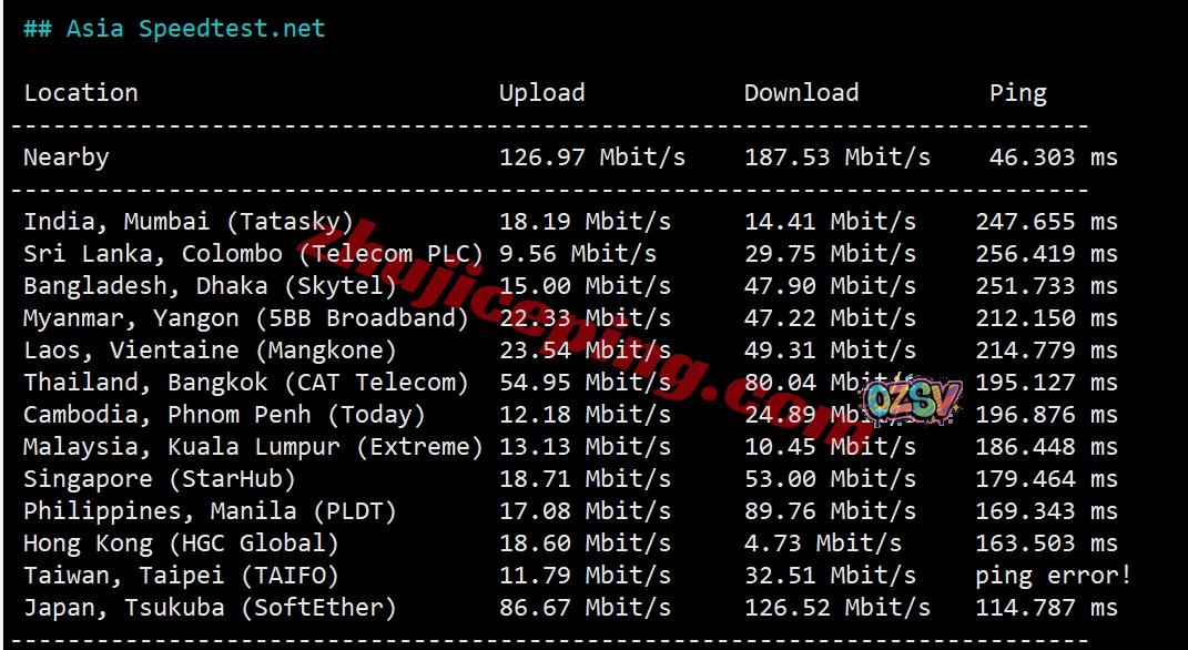 speedtest部分亚洲节点的测试效果: