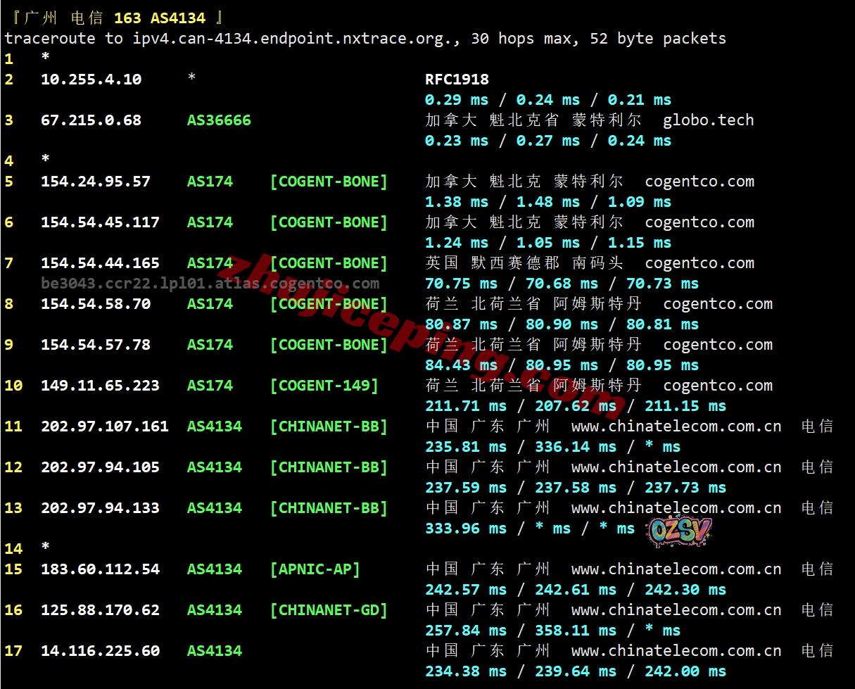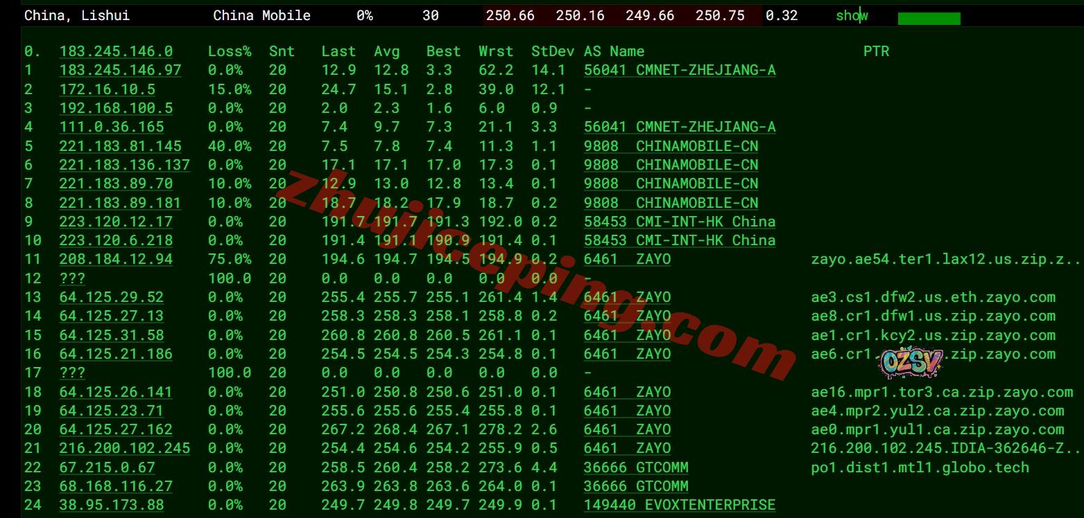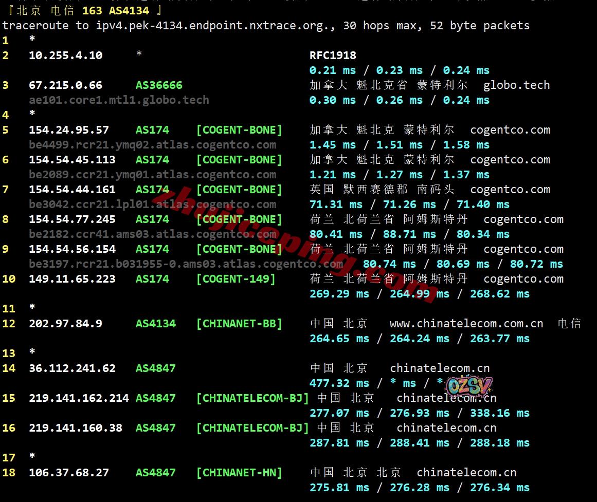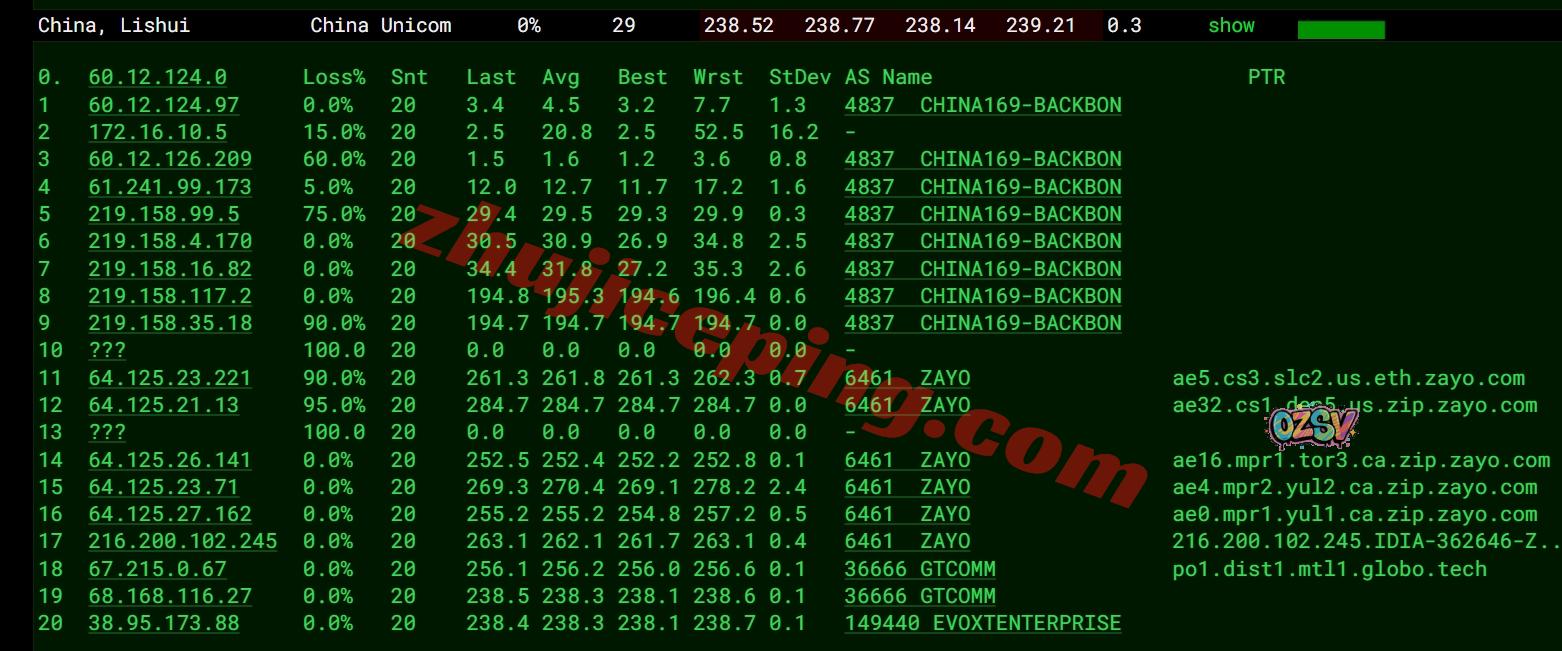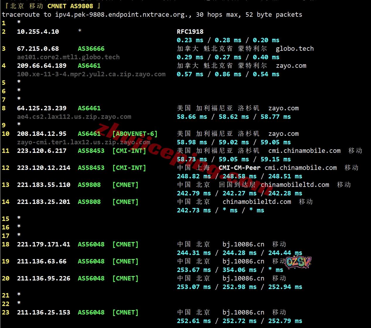 北京/广州方向:走zayo先到美国洛杉矶,然后从移动洛杉矶CMI节点直连回国