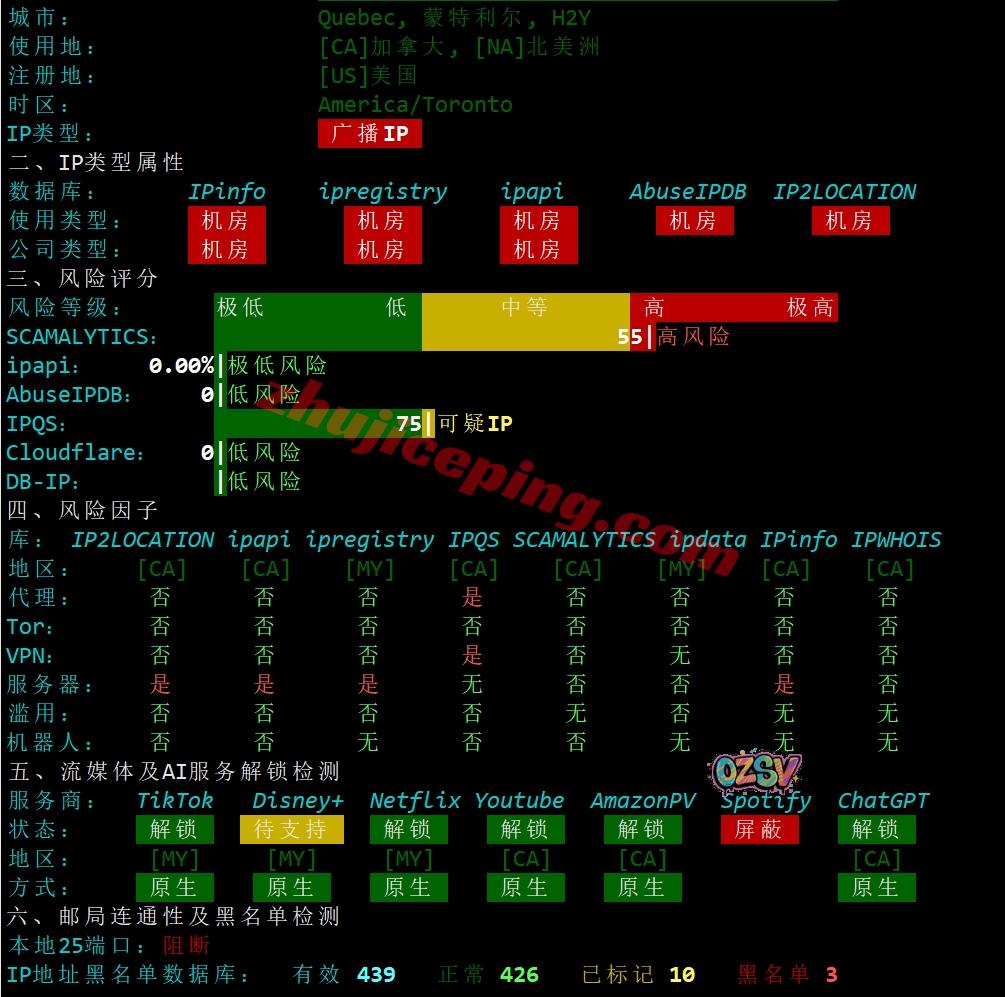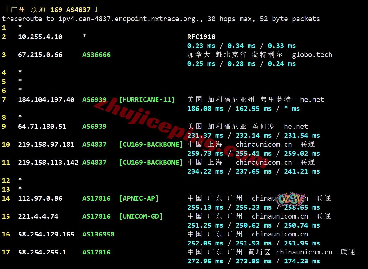 网络方面,去程是三网直连美国西海岸然后走国际线路去加拿大;
