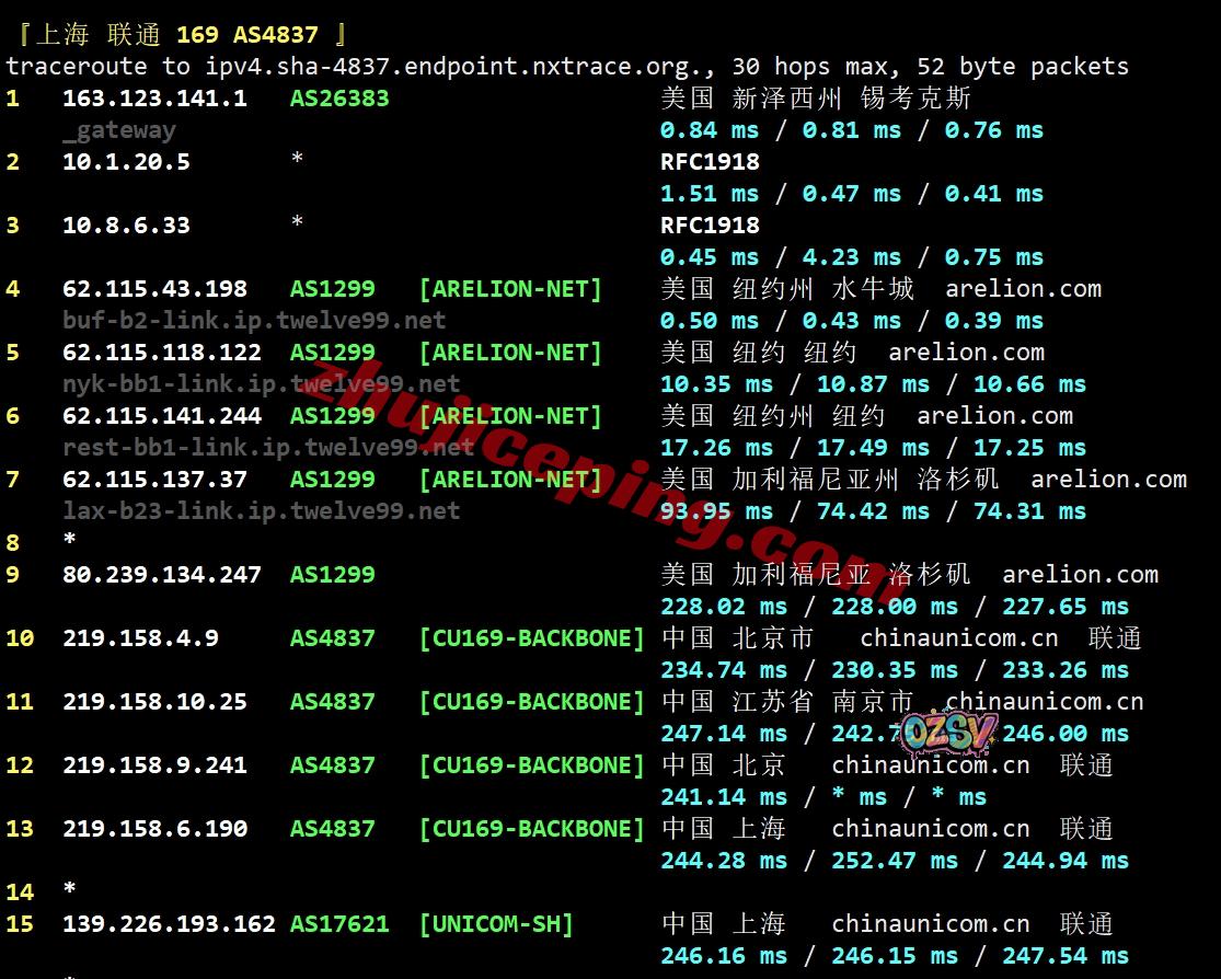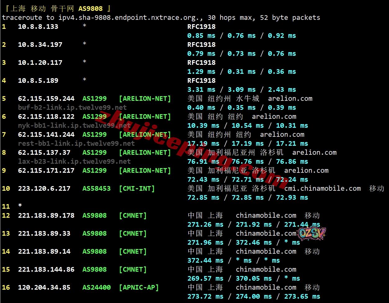 上海方向:走twelve99到洛杉矶后转移动洛杉矶节点,直连出海回国