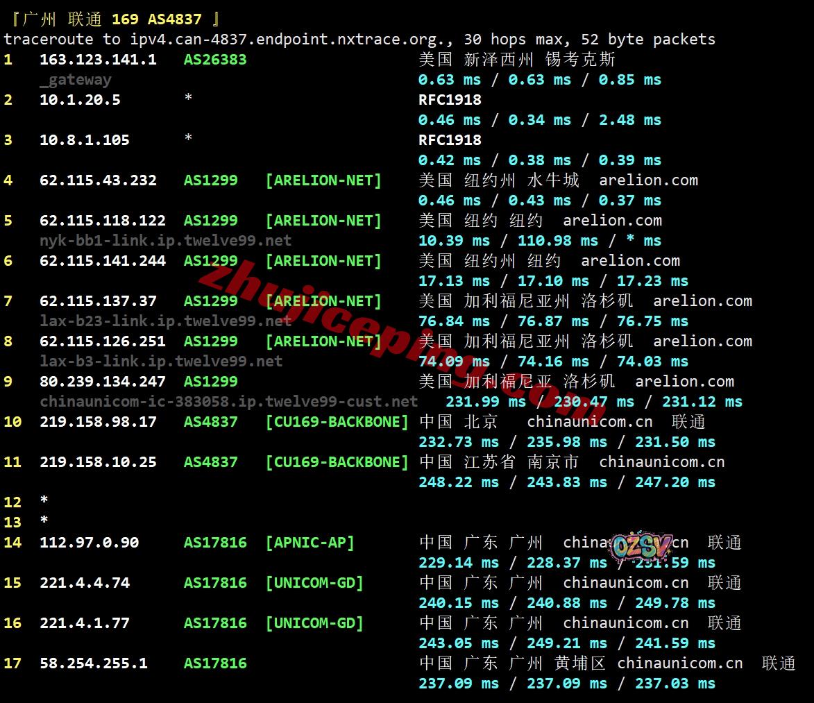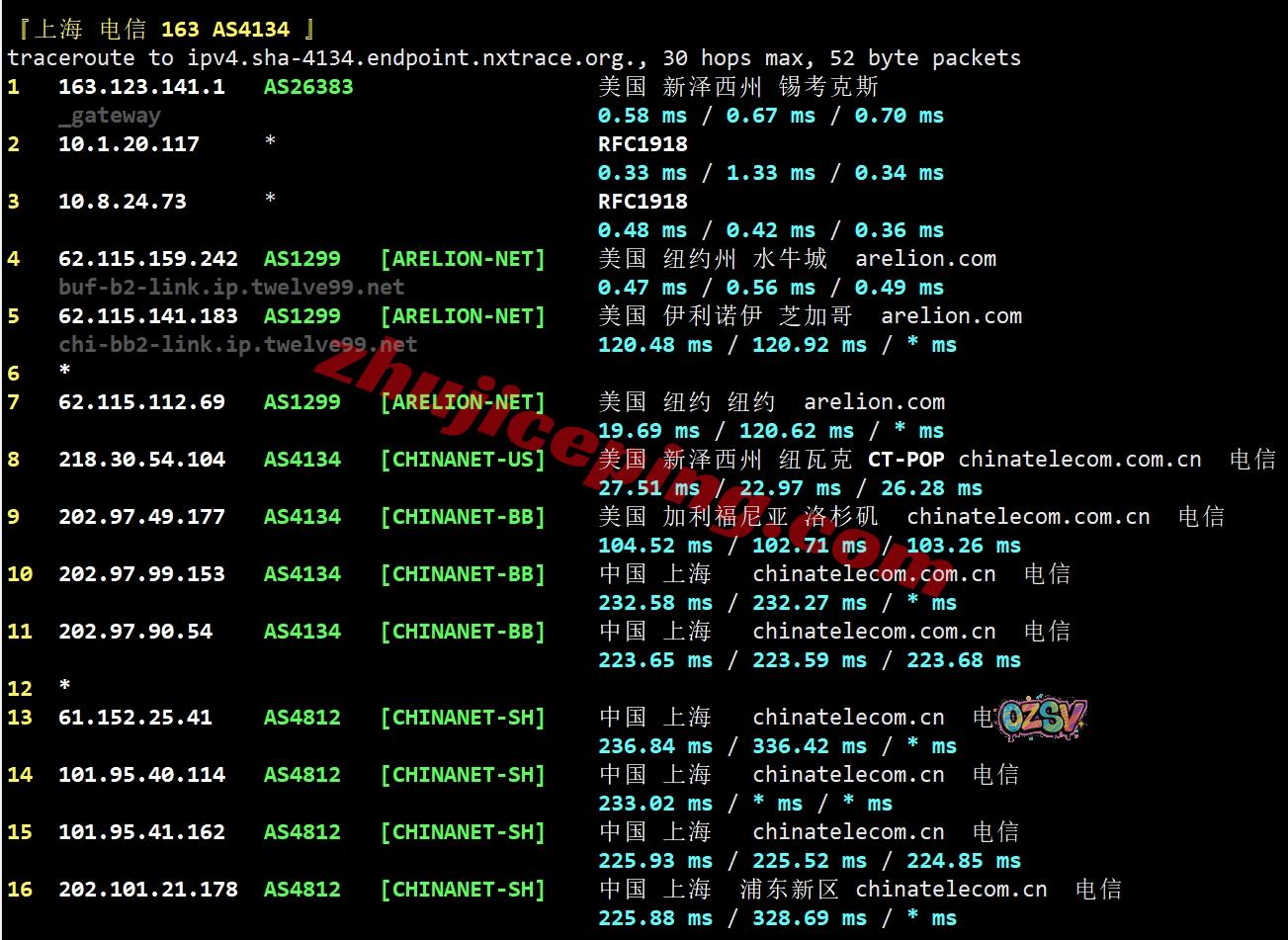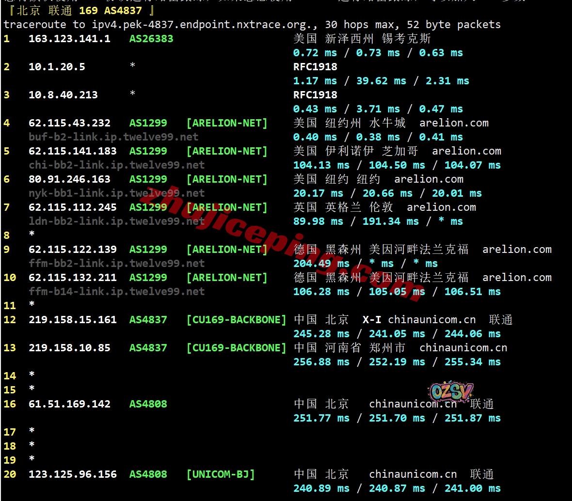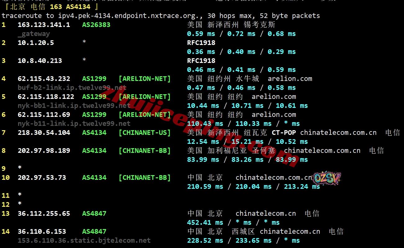 北京/上海方向:走twelve99出来对接电信在新泽西纽瓦克的pop然后直连圣何塞/洛杉矶电信节点,直连出海回国