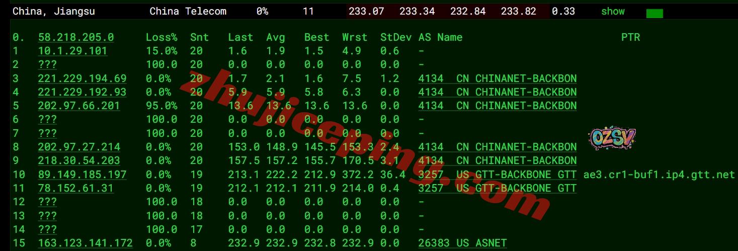 电信去程:直连电信美国圣何塞节点然后走GTT一路去东海岸纽约