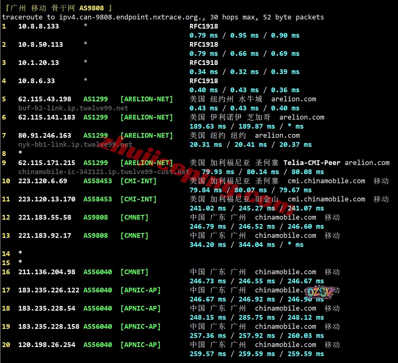 广州方向:走twelve99到圣何塞移动peer然后转移动圣何塞节点再去移动旧金山节点,然后出海直连回国