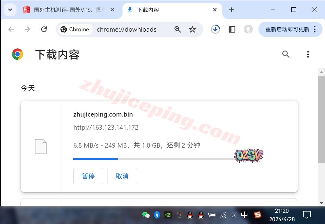 存放在测试VPS上的文件,广州联通家宽用Chrome下载,大致速度如下: