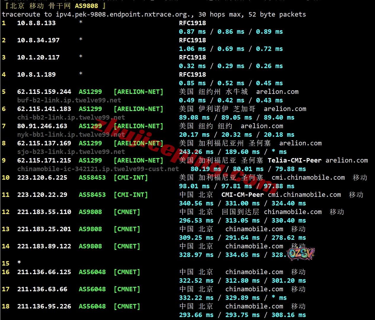 北京方向:走twelve99一路西行到圣何塞接移动的peer,然后转移动CMI节点,然后直连出海回国