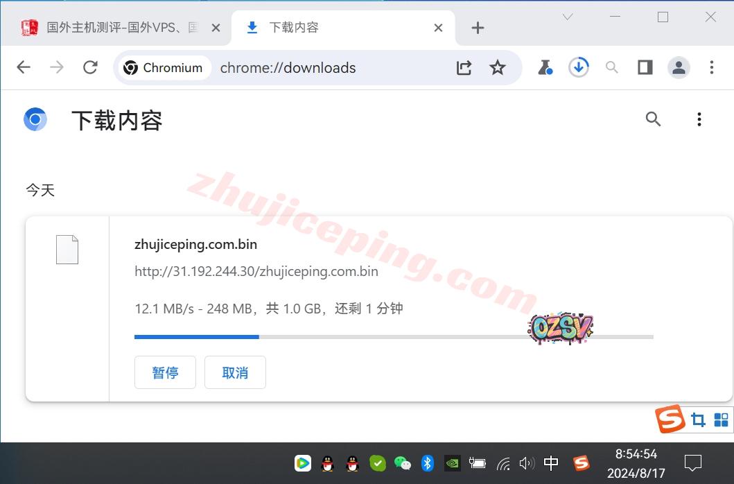存放在测试VPS上的文件,广州联通家宽直接浏览器下载,大致下载速度: