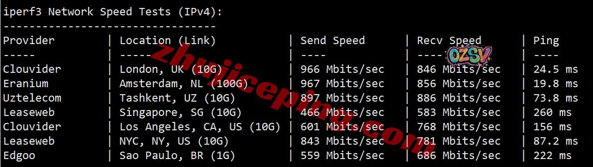 iperf3,几个国际节点的测试数据: