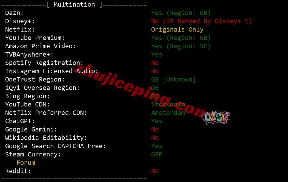 部分欧洲流媒体解锁测试: