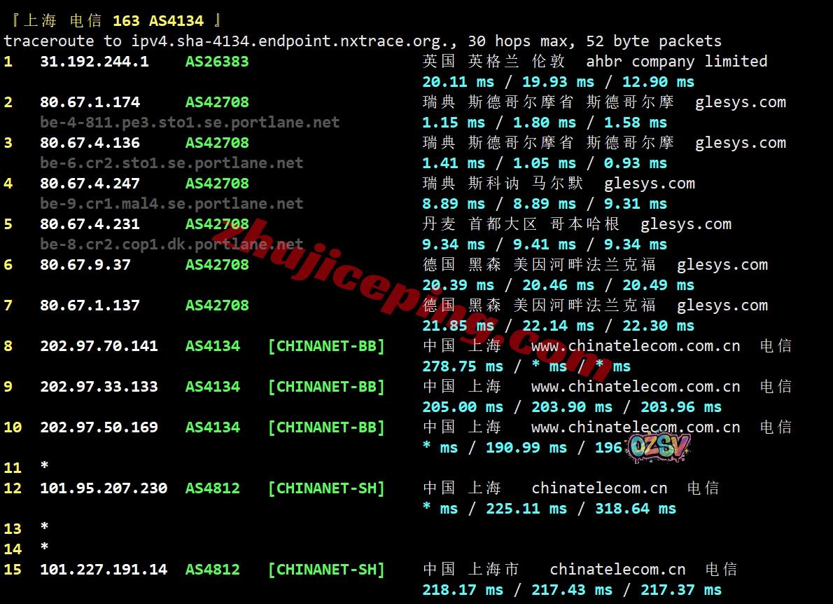 电信去程:直连电信英国伦敦节点,然后走portlane.net去荷兰再去瑞典