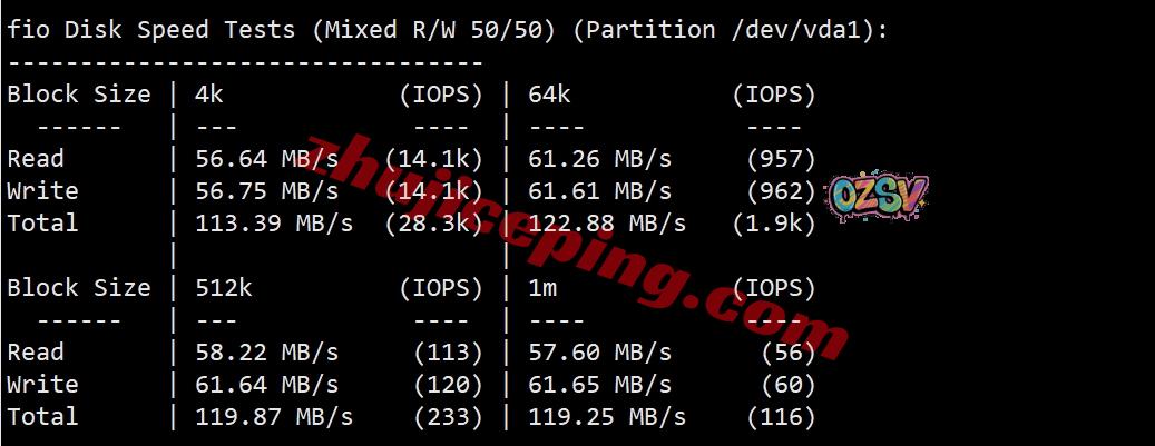 VPS性能测试,部分数据: