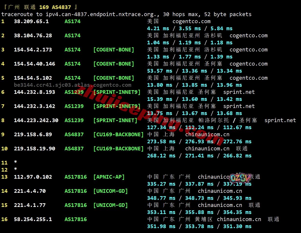广州方向:走cogent经过圣何塞转sprint出海回国