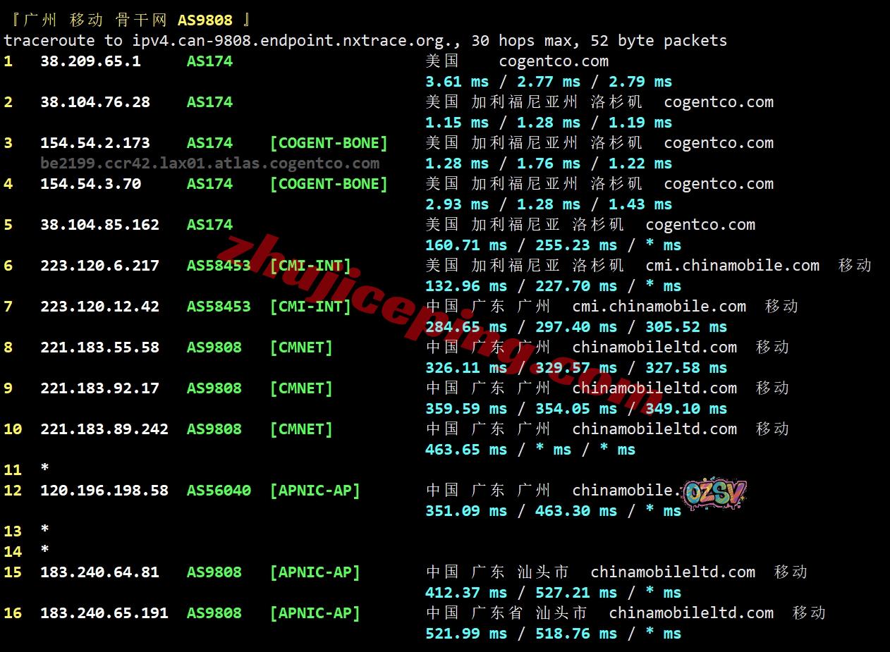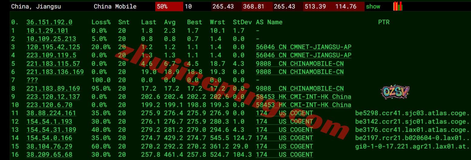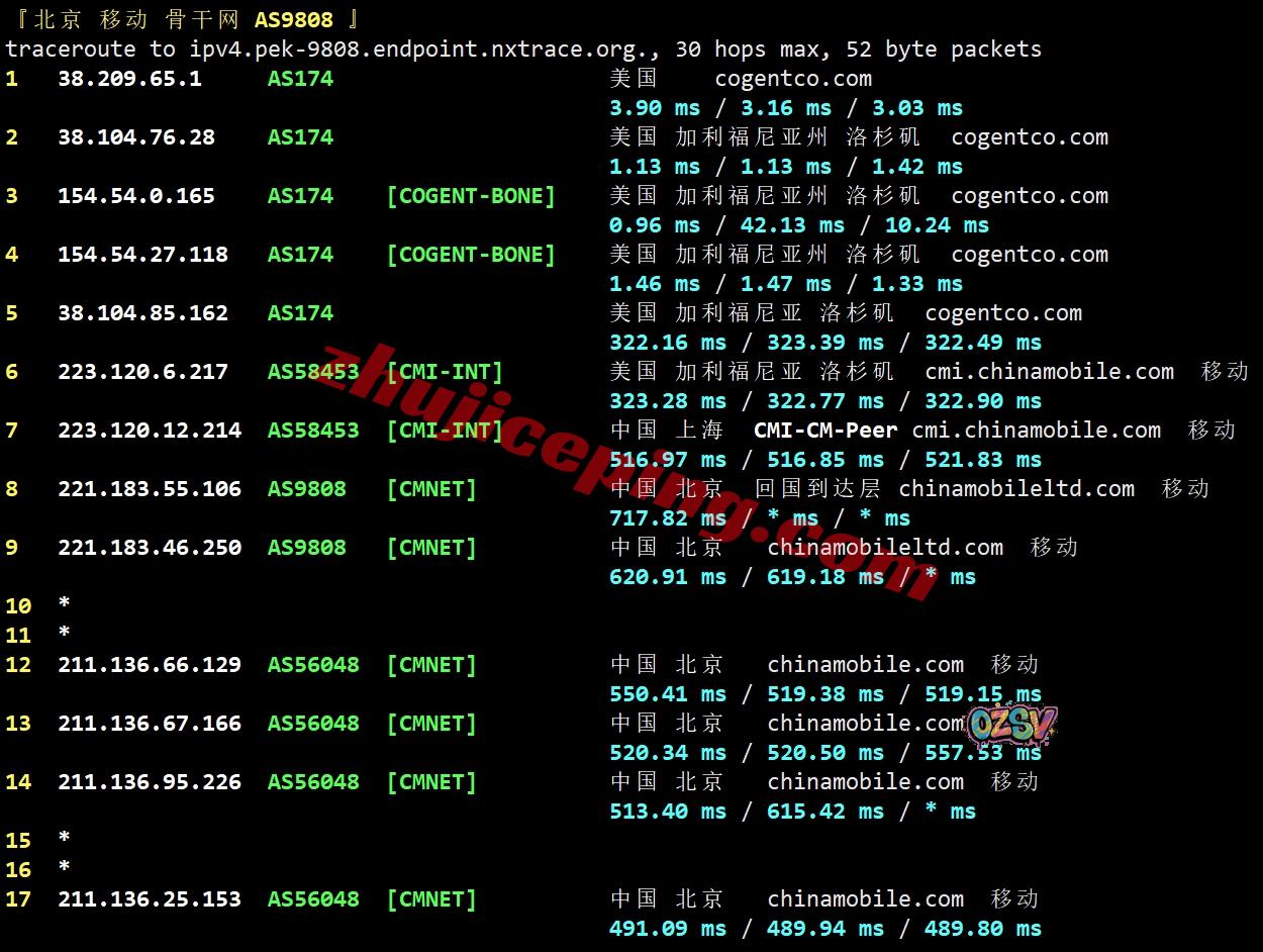 移动回程:走cogent在洛杉矶/圣何塞转移动CMI直连回国