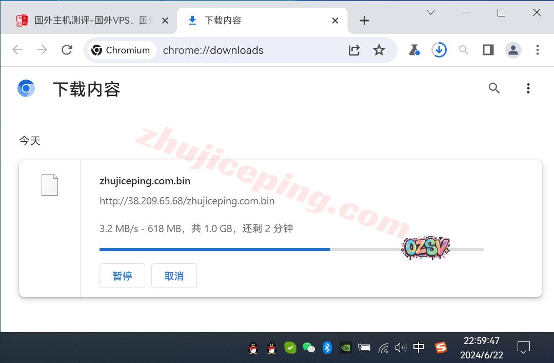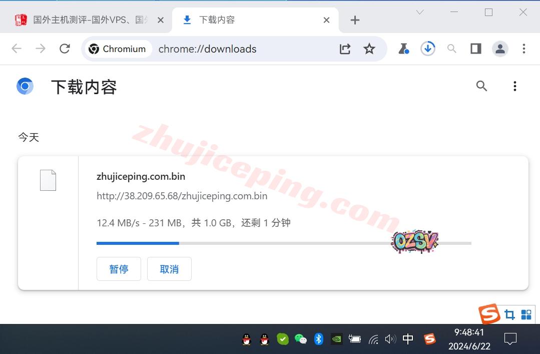 存放在测试vps上的文件,广州联通家宽直接用浏览器下载该文件,大致的下载速度如下: